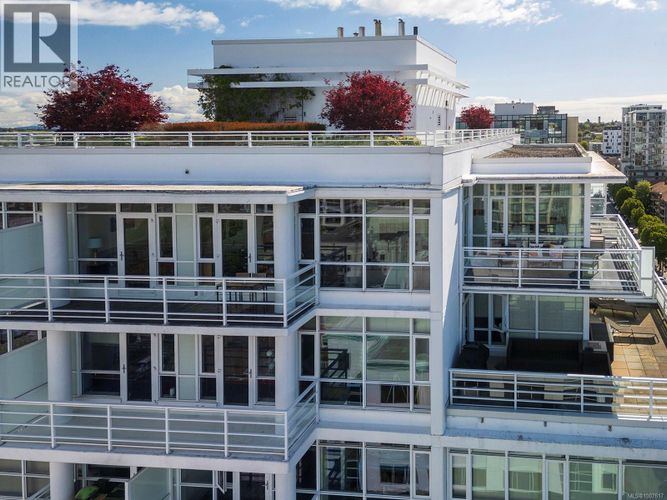Step into Penthouse 1502, where panoramic ocean and city views fill expansive floor-to-ceiling windows. The open layout features wood floors and high ceilings, offering a comfortable space for daily living and relaxed entertaining. A contemporary kitchen with quartz counters flows into bright dining and living areas. Bedrooms are thoughtfully separated for privacy. The spacious primary suite includes dual closets and an ensuite with heated floors, soaker tub, and separate shower. A second bedroom or office and full guest bath complete the plan. Two large balconies (260+ sq ft) extend the living space outdoors, with gas and water hookups on the larger, west-facing side. Building amenities include a rooftop terrace with 360° views, full lounge with kitchen, patio with BBQ, and a resident caretaker. Located in one of Victoria’s most walkable neighbourhoods—just minutes from the Inner Harbour, cafés, dining, shopping, and nightlife. A rare penthouse offering in the heart of the city! (id:26452)