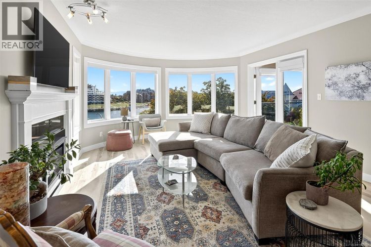 OCEANFRONT TWO-BEDROOM CONDO — SONGHEES POINT! Experience breathtaking harbour views from every principal room in this elegant two-bedroom, two-bathroom executive home at Songhees Point, a prestigious steel and concrete building along Victoria’s Inner Harbour. This beautifully updated residence offers 8’5” ceilings, an open-concept layout, and a luxury kitchen featuring stone countertops, stainless steel appliances, and a breakfast bar. The spacious living and dining area showcases a wall of seven bay windows, a new gas fireplace with custom mantle, and French doors leading to a private ocean-view deck—perfect for morning coffee or evening sunsets. The primary suite enjoys panoramic views and deck access, along with a walk-in closet and spa-inspired ensuite complete with glass shower, heated tile floors, vanities, and stone counters. The second bedroom or home office is complemented by a versatile family room with a built-in Murphy bed, plus a separate laundry room for added convenience. Recent updates include luxury wide-plank flooring, freshly painted flat ceilings, soft-roll UV blinds, modern lighting, and two fully renovated bathrooms featuring radiant in-floor heat and high-end fixtures. Additional highlights include a large storage room, secure underground parking, and secure visitor parking, all within a healthy, well-managed strata that offers a new gated courtyard entry, guest suite, residents’ lounge, car wash station, kayak and bike storage, and a rooftop deck. This pet-friendly, rental-friendly, and EV-ready building offers an exceptional lifestyle just steps to Victoria’s Inner Harbour, with waterfront walking paths connecting you to dining, shopping, the water taxi, and local transit. A rare opportunity to own a luxury oceanfront condominium in one of Victoria’s most desirable neighbourhoods. (id:26452)