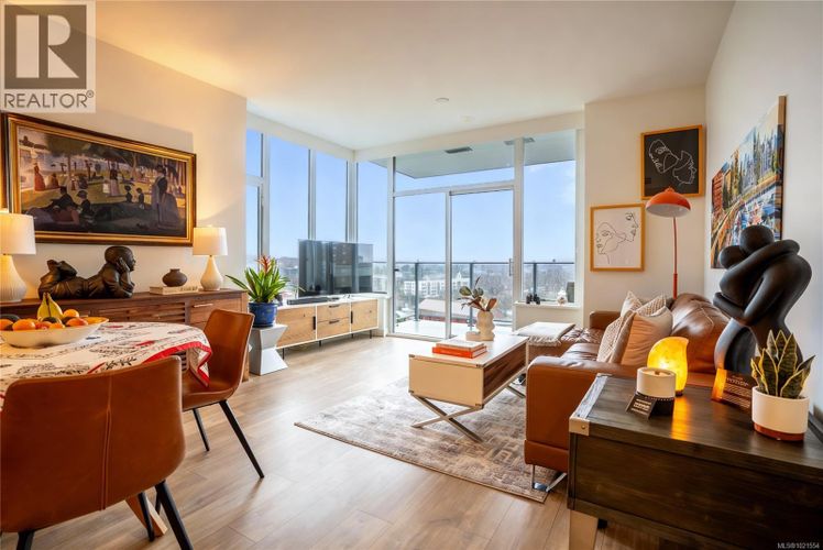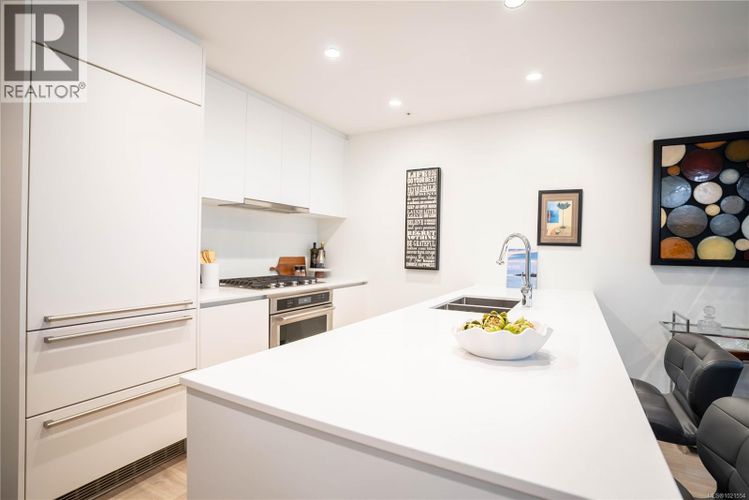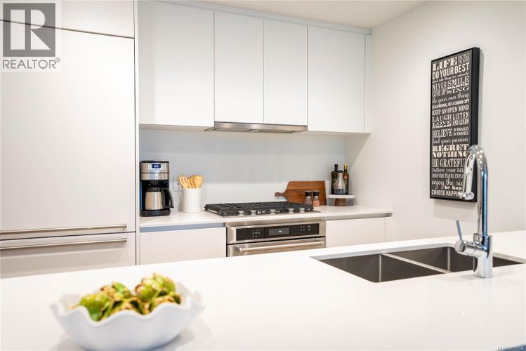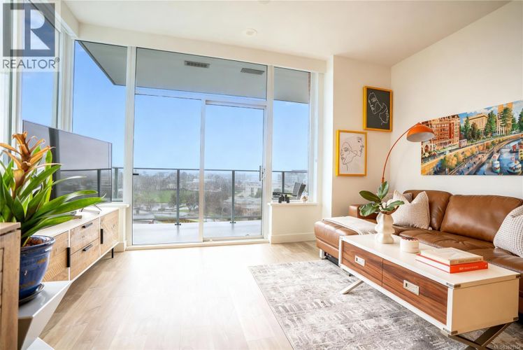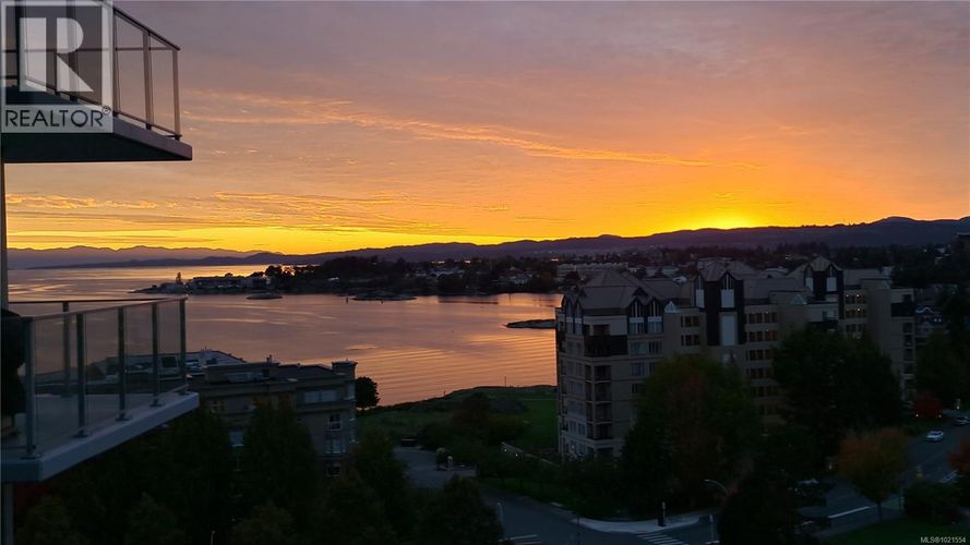OPEN HOUSE SAT DEC 13, 12-2pm. Welcome to this beautifully finished 960 sq. ft. 2-bedroom, 2-bath residence at The Encore, offering stunning views, contemporary design, and exceptional amenities in one of Victoria’s most sought-after waterfront communities. Located on the 8th floor, this bright and sophisticated home features 9-foot ceilings, expansive floor-to-ceiling windows, and an open-concept layout designed to maximize natural light and showcase the sweeping views of the Inner Harbour, ocean, and surrounding cityscape. The spacious living and dining area is ideal for everyday living and entertaining, flowing seamlessly onto a large covered balcony, perfect for enjoying morning coffee or taking in the views. The modern kitchen is equipped with premium stainless-steel appliances, a gas cooktop, quartz countertops, integrated microwave, and ample storage. The well-designed floor plan places the two bedrooms on opposite sides of the home for privacy. The primary bedroom includes a generous walk-in closet and a luxurious 3-piece ensuite, while the second bedroom is steps from the full 4-piece main bath, making it ideal for guests or a home office. A dedicated desk nook adds convenience for remote work. In-suite laundry and efficient HVAC heating/cooling complete the interior. Encore blends contemporary architecture with timeless design, featuring heritage-style brick that complements Victoria’s historic surroundings. Residents enjoy resort-style amenities including a large lap pool, fully equipped gym, cabanas, and an outdoor kitchen with BBQ, creating a truly elevated living experience. Perfectly positioned just steps from the Westsong Walkway, parks, cafes, restaurants, and the waterfront, this home offers an exceptional lifestyle with walkability, scenery, and comfort all in one. (id:26452)