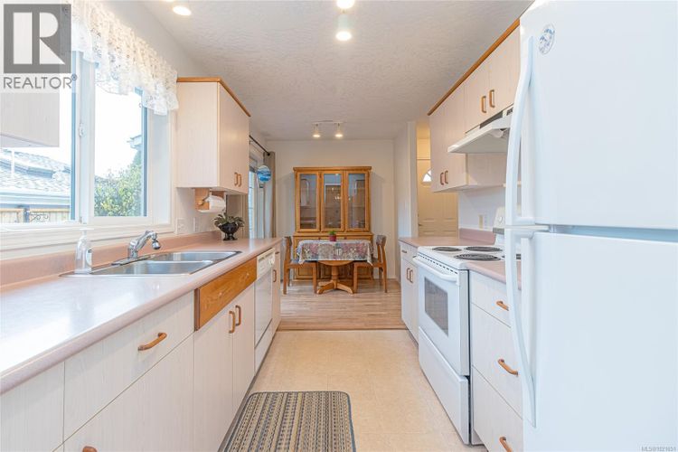 Feel at home at 39 Eagle Lane in the peaceful, well-maintained Songhees Retirement Community! This bright and comfortable 2-bedroom rancher offers easy living for residents aged 55+. Vaulted ceilings, generous windows, and a cozy gas fireplace create a warm, airy living space. The kitchen provides ample storage and counter space and connects to a casual eating or family area. The spacious primary bedroom features excellent closet space and an accessible ensuite. Recent upgrades add great value and peace of mind: new hot water heater (2022), new roof (2023), new furnace (2024), upgraded attic insulation and crawlspace moisture barrier (2024), new fridge (2024), plus new washer/dryer, interior paint, fencing, and an Electrical Certificate of Inspection (2025). A single-car garage and low-maintenance yard offer convenience, while residents enjoy a friendly community, active clubhouse, and close proximity to Admirals Walk Shopping Centre and scenic waterfront pathways at Portage Park. (id:26452)