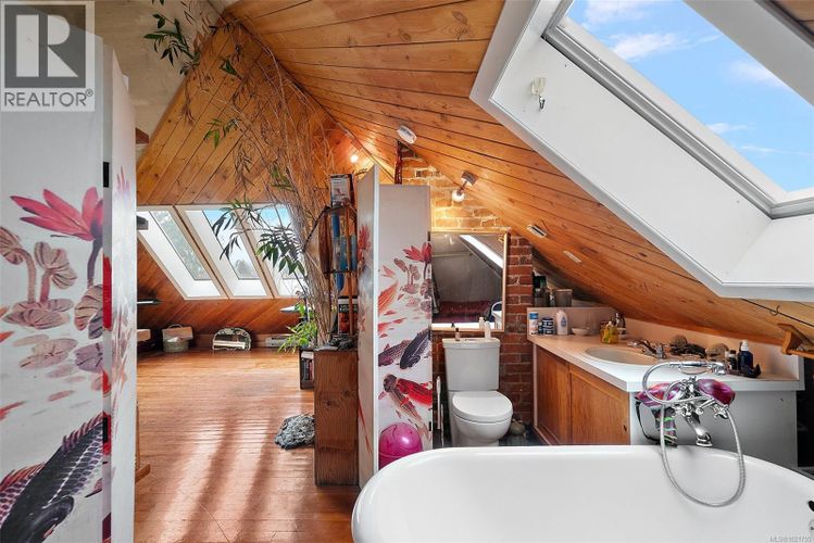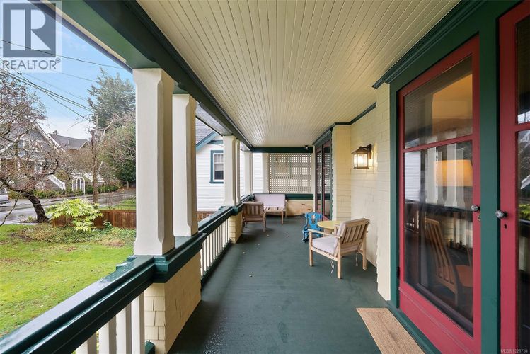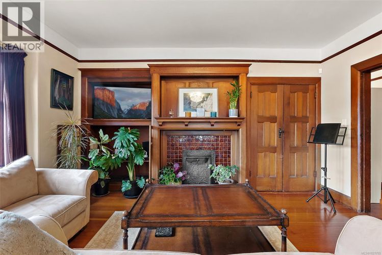 The Claremont Estate is a rare opportunity to own one of Samuel MacClure’s most iconic Edwardian Foursquare designs. Distinguished by its classic shingled façade, bell-cast hipped roof, and impressive wraparound balcony, this heritage home showcases McClure’s signature craftsmanship at every turn. Inside, original fir floors, custom woodwork, French doors, stained glass, and four tiled fireplaces create a warm, timeless atmosphere. Professionally converted in 1934 into a legal DUPLEX (income suites), plus a unique attic great-room suite, the property offers over 4,000 sq. ft. of versatile living space. Numerous modern upgrades provide safety, efficiency, and turnkey comfort while preserving the home’s historic character.Located on a quiet, tree-lined street just a short walk to Dallas Beach, the Claremont estate is an exceptional heritage landmark in a highly desirable, family-oriented neighbourhood. (id:26452)