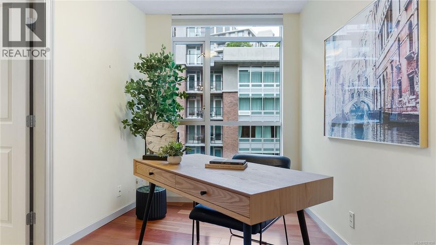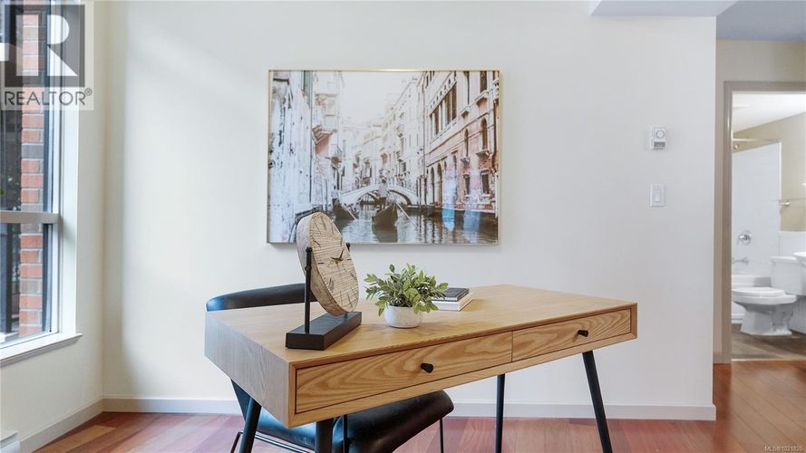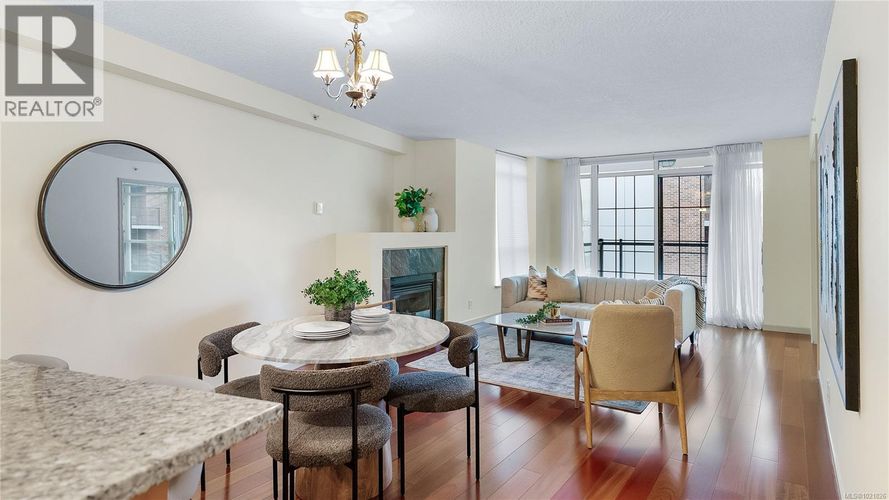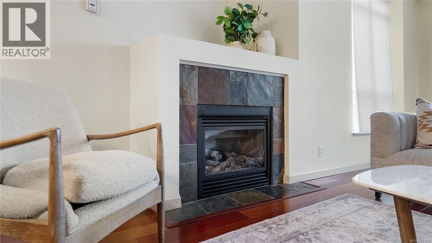 OPEN HOUSE: SAT, DEC 13, 12-1. Welcome to City Place, an award-winning steel and concrete building situated in the heart of Victoria’s Humboldt Valley. Offering the perfect blend of modern comfort and everyday convenience in one of the city’s best locations. Everything you could ever need is just outside your front door, with Beacon Hill Park, Cook Street Village, and the Inner Harbour just a short stroll away. Tucked on a quiet residential street, you get full access to downtown living with the privacy and calm of Fairfield. Natural light fills this spacious condo with an open layout & 10 ft ceilings create a bright, airy feel. An ideal floor plan with two bedrooms, two bathrooms, and a den/office space. Enjoy floor to ceiling windows in the primary suite, a modern kitchen, an open den, and plenty of storage. The living area features a gas fireplace, and the kitchen is finished with stainless steel appliances, granite countertops, and a breakfast bar. Both bedrooms are well sized, with french doors leading to a light filled primary suite with a four piece ensuite. A second bedroom, full bathroom, and den complete the floor plan. Additional features include new HW tank (2025), in suite laundry, EV ready secure underground parking, bike storage, a private storage locker, and a pet friendly building with no size or weight restrictions. Ideally located steps from the harbour, shops, dining, and transit, this unit offers style, comfort, and unmatched walkability. (id:26452)