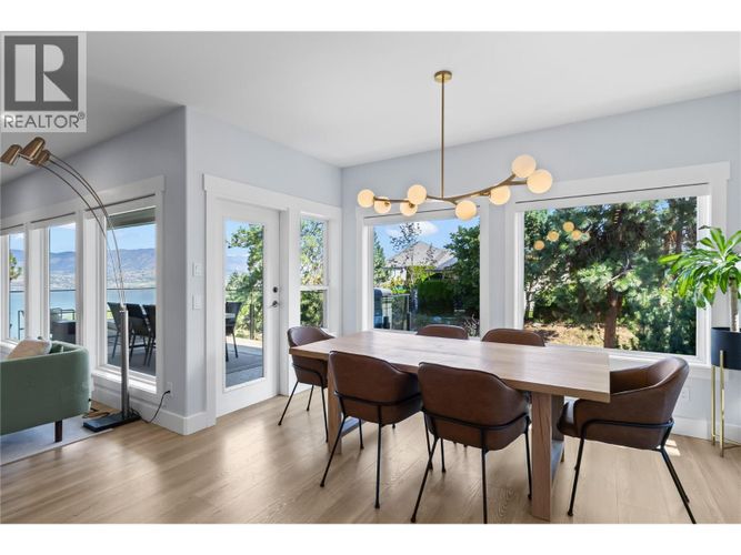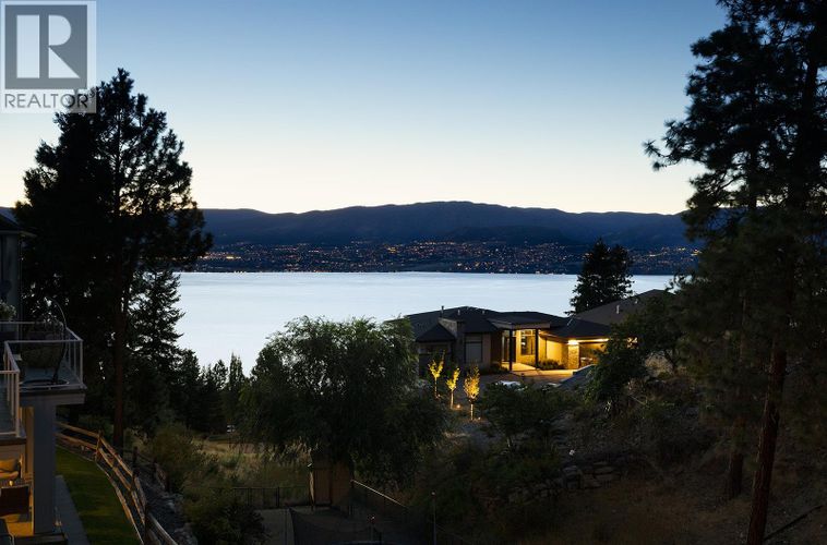 Stunning renovated family home with lake views in sought-after Kettle Valley. The bright, open kitchen features a large island, Jenn-Air stainless steel appliances, modern cabinetry, and a spacious pantry. Enjoy lake views from the kitchen, dining, and living areas with floor-to-ceiling windows and an updated fireplace. Step out to the covered patio for outdoor dining or to relax and watch the sunset. The primary suite offers a walk-in closet and full ensuite with glass shower, double sinks, and a soaker tub overlooking the lake. Two additional bedrooms with built-in organizers, a renovated main bathroom with double sinks, and a redesigned laundry/mudroom with garage access complete the main level. The lower level opens to a private fenced yard with flat lawn areas and a second deck with hot tub and glass railings. Inside, the bright basement features a large family room, theatre room, rec room, two bedrooms, and a full bathroom—ideal for guests or family. Walking distance to Chute Lake Elementary, Kettle Valley Village shops, and Quilchena Park. Move-in ready and perfect for families looking for space, style, and views. (id:26452)