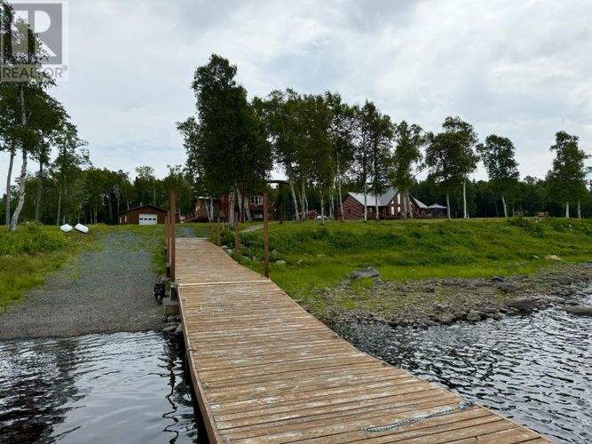 Nestled on the pristine waters of the Gander River, this luxury salmon fishing lodge offers a rare investment opportunity. Located just 5km west of Fourth Pond and 2km from the nearest neighbour, this property ensures privacy and exclusivity with access to premier salmon fishing pools. The main lodge blends rustic charm with modern comforts featuring 18ft pine ceilings, stone fireplace and cozy well-appointed common areas that are tastefully decorated with unique wildlife elements. Noteworthy features include full ensuites off each of the 4 bedrooms, a dream commercial kitchen, a newer Insulated Concrete Foundation and a durable metal roof, ensuring robustness and longevity. Located on 2.4 acres and offering over 320ft of water frontage, this proeprty features multiple upgraded buildings (6 in total). The facility has two water wells, operates with solar power and two backup generators to ensure uninterrupted comfort. Positioned with easy access to the town of Gander the Lodge offers a secluded, natural charm. A rare opportunity to own a piece of Newfoundland's pristine salmon fishing destinations. Detailed brochure available. (id:26452)