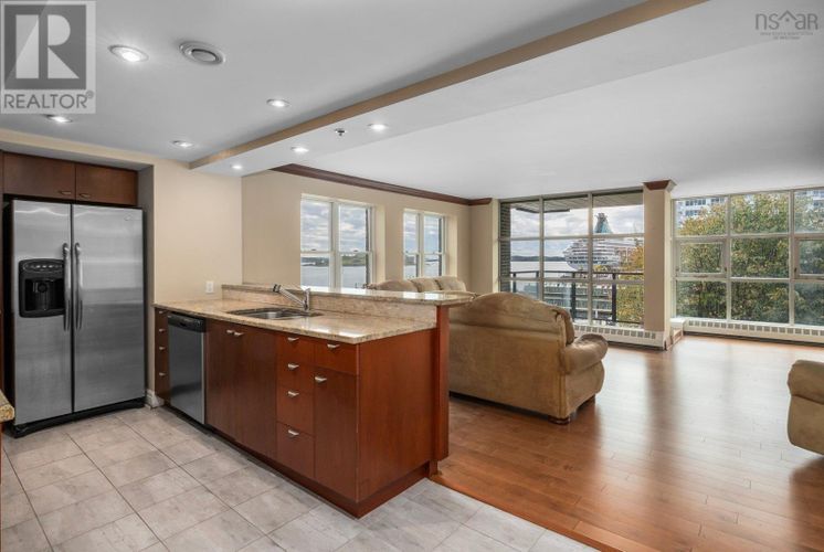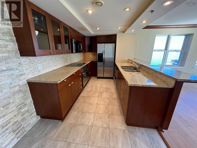 SPECTACULAR HARBOUR VIEWS! If you dream of being alongside the water in a prestigious condo building with all the amenities Halifax has to offer at your doorstep then this is the perfect location for your next home! This beautiful air conditioned condo boasts 3 bedrooms, 2 baths, fireplace and so much more! The kitchen boasts granite surfaces, stainless steel appliances, an abundance of cabinetry, dining nook and feature stone wall. The living room features 2 walls of windows to maximize views of the harbour, George's Island, waterfront boardwalk, and watch the ships come and go! Cozy up to the natural gas fireplace on those chilly nights or enjoy morning coffees on your balcony on the warm summer mornings. Bishops Landing also offers an in ground pool, fitness room, common rooms, 24 hour concierge, underground heated parking garage, and transit at the doorstep. Walk to your favourite restaurants or specialty shops! Parking spot #9 with storage. (id:26452)