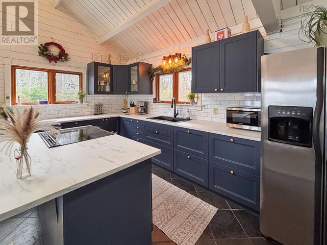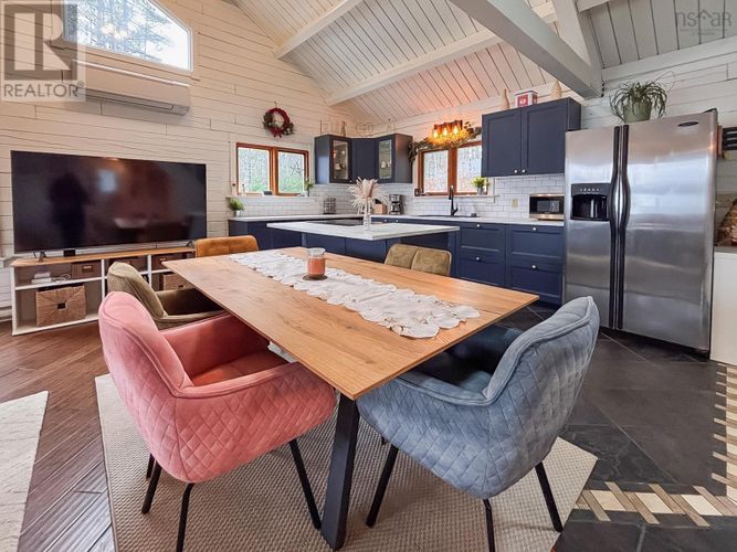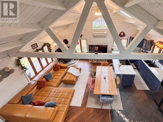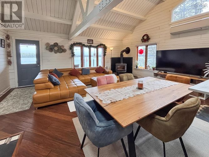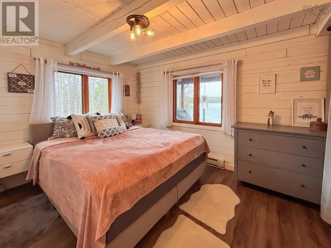 If lake life has been calling your name, consider this your sign to pick up the phone. This gorgeous year-round log-built home on Hirtle Lake is the kind of place that instantly makes you breathe deeper, smile wider, and maybe even cancel your weekend plans because why would you ever want to leave? Located just 25 minutes from Bridgewater, it delivers that away from it all feeling without being away from anything. Inside, the home mixes warm cabin vibes with all the modern upgrades, a cozy wood stove and cathedral ceilings with those beams you were secretly hoping for. A brand-new kitchen steals the show; the bathrooms have all had their glow-ups; the appliances are new; and the entire basement has been transformed into a beautifully finished living space. With 4 bedrooms and 3.5 baths, theres more than enough room for family and guests. Step outside and the fun really begins. With approximately 185 feet of lake frontage, you can sip coffee from your covered porch with a view, cannonball off the dock, or launch your kayak. The lot is spacious, with room for everyones toys including an RV, which already has its own electrical hookup. And yes, theres storage galore and a 20 x 20 double detached garage. If youve been dreaming of a place where summers feel endless, winters feel magical, and every day feels just a little bit better than the last welcome home. (id:26452)
