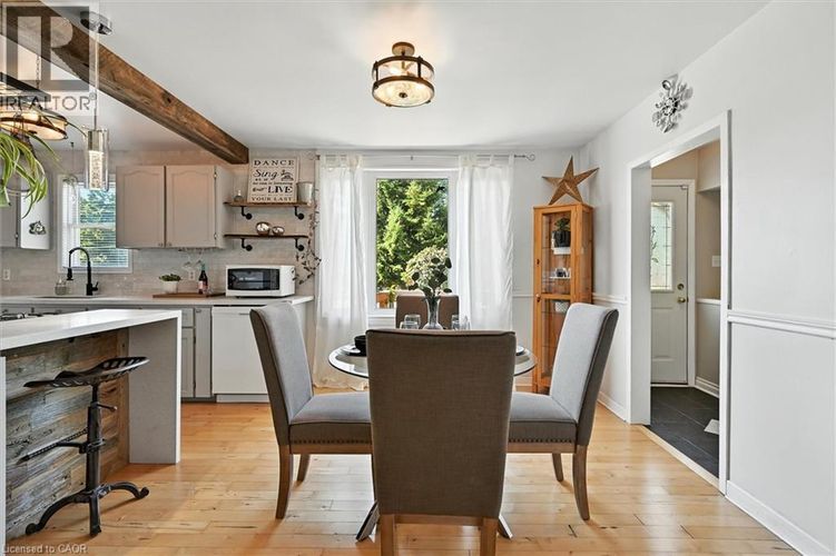 Welcome to 8554 Haldibrook Road – Where Country Charm Meets Modern Comfort! This beautifully maintained bungalow offers the peacefulness of rural living with the convenience of being just minutes from Hamilton, Caledonia, and major commuter routes. Nestled in a desirable, scenic community, this home is ideal for anyone looking to enjoy a quiet lifestyle without compromising on convenience or modern amenities. Step inside to discover a thoughtfully updated main floor, featuring gleaming hardwood floors and a gorgeous modern kitchen with quartz countertops —perfect for both everyday living and entertaining. The renovated 4-piece bathroom adds a luxurious feel, while the finished basement includes a large, open 3 piece bath installed in 2024 and a cozy theatre room complete with in-ceiling speakers, making movie nights unforgettable. Three spacious bedrooms on the main level provide plenty of room for family or guests. This home has seen many recent upgrades that enhance both comfort and peace of mind. The siding, soffit, eavestroughs, and several windows were replaced in 2021, while the roof was done in 2015. The furnace and air conditioning system were updated in 2017, the jet pump was replaced in 2023, and the driveway was resurfaced in 2020. For added reassurance, the cistern was professionally cleaned and inspected in 2024. Outdoors, the property truly shines. The serene backyard features a tranquil pond, mature apple and cherry trees, and a fire pit—perfect for relaxing evenings under the stars. A large 40-foot-deep detached garage/workshop provides ample space for vehicles, storage, or your next hobby project. Whether you’re seeking a family home or a peaceful country retreat, this property is move-in ready and waiting for you. Don’t miss your chance to own this exceptional slice of countryside paradise. (id:26452)