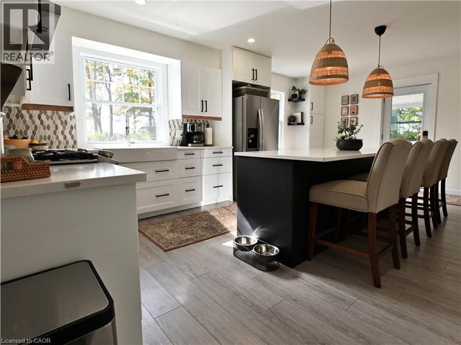 Welcome to this MULTI GENERATIONAL home with IN-LAW SUITE. Located just on the outskirts of Simcoe, this 1.12 Acre property sits perfectly in a picturesque quiet CUL-DE-SAC. A beautiful covered wraparound porch hugs this modern country farmhouse feel home. The meticulously maintained landscape front and back is sure to please from it's gorgeous greenhouse, stunning perennial gardens to it's sweet retreat we like to call The Lounge in the back yard. A therapeutic hot tub for our cold Ontario winters awaits you under the covered porch or jump into the refreshing above ground pool off the sundeck during our sweltering summer months. The separate entrance IN-LAW SUITE is approximately 1065 SF with high end custom kitchen, large built on sunroom, living room with pot lights, big picture window, main floor laundry and a walk-in tub and shower in the ensuite. The star of the show is stolen inside the main house. Completely renovated with style shows throughout, from a modern kitchen with quartz counters and a 10 foot island, to a nicely designed primary bedroom and ensuite. Upstairs hosts the primary bedroom, 2 additional bedrooms and a 4 pcs bathroom. Need more space? The fully finished basement has a gorgeous recreation room with a gas fireplace, another bedroom and another 4 pcs bath. Perfect for entertaining guests or your favorite teenagers oasis. The list of upgrades extends from a fully sealed driveway 2020, new roof 2024, exterior of house professionally painted 2024, all upstairs windows 2024 just to list a few. Best of all this property has a 46 Foot dug well, water should never be an issue and one less bill to pay! (id:26452)