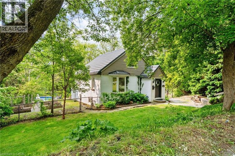 Cottage Living in the City-A Hidden Gem at the Escarpment. This newly renovated 2+3 bedroom, 3-bathroom home blends modern comfort with serene, country-style living right in the city. Nestled on nearly half an acre of private, tree-lined land at the base of the escarpment, this unique property offers the peace of a rural retreat while being just minutes from the GO Train, Highway 6, and Downtown Dundas/Waterdown/Hamilton. Step inside to find a sun-filled main floor featuring a beautifully updated kitchen, bathroom, and bedrooms, all accented with rich hardwood flooring. Upstairs, two spacious bedrooms and a stylish 2-piece bathroom provide comfortable family living. The fully finished basement with its own separate entrance offers incredible flexibility, including 3 additional bedrooms, a full bathroom with heated floors and a walk-in shower, and a cozy office with a built-in fireplace and bookshelf feature wall, along with an updated cold room for storage. High voltage outlet built in for the option to add a kitchen to the basement for separate living space. Step outside to your backyard oasis. Perfect for entertaining or quiet relaxation, the expansive outdoor space includes: above ground pool, over 30 mature rose bushes, peonies, lilacs and other perennials, fruit orchard and vegetable garden, a charming red barn-style chicken coop. Located just steps from the Bruce Trail, Royal Botanical Gardens, and a family-friendly park, this home offers the best of both worlds: nature at your doorstep and every convenience nearby. This is more than a home-its a lifestyle. Don't miss your chance to see it. (id:26452)