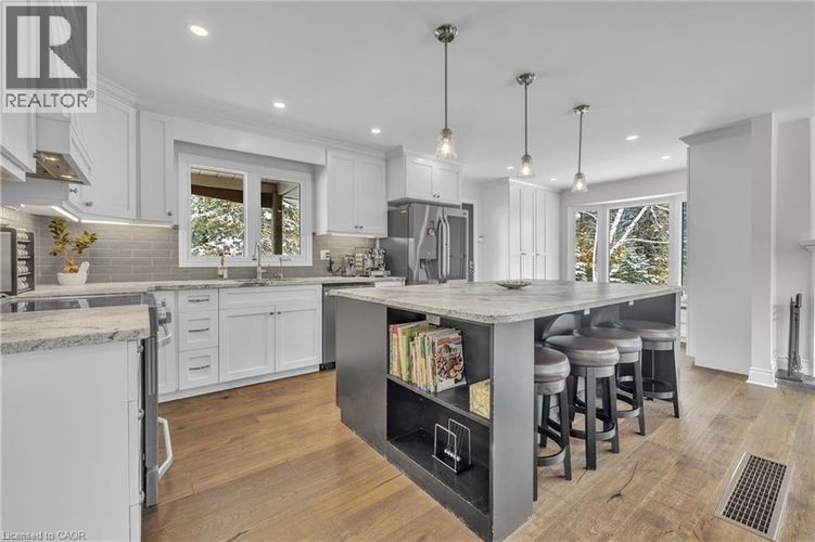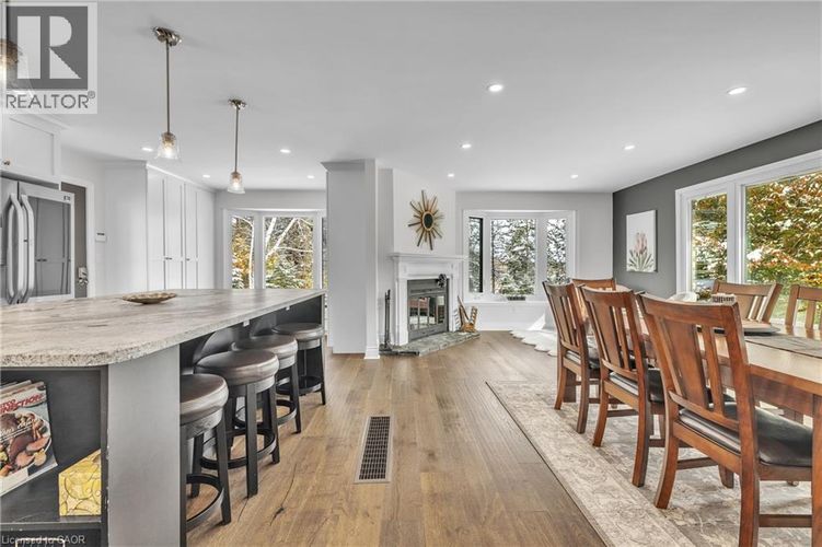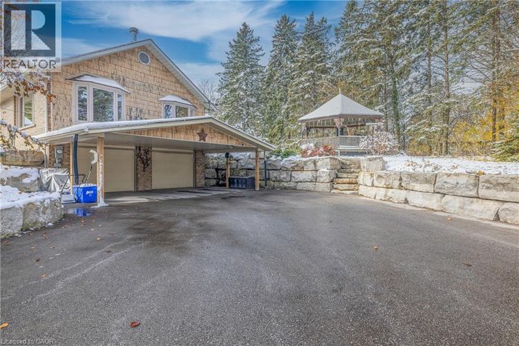 As you drive up the lane, you will be impressed by the space and tranquility of this private 3 acre estate. The 1880 sf Bungalow with 3+1 Bedrooms and 3 full bathrooms is well updated throughout. The stunning kitchen overlooking the dining area with seating by the fireplace has a large island with seating, leathered granite, distressed cabinets, lots of drawers/pullouts, large pantry cabinets and a separate entrance to a great bbq patio. Engineered hardwood throughout the main floor, living room w/ vaulted ceiling & XL patio doors offering a stunning view and leads to the large composite deck with built in hot tub. A sun filled house with oversized windows throughout and many high quality energy efficient Tripple Pane windows with built in pull-down screens. King size primary bedroom with door access to the deck and his/her closets. A large en-suite with soaker tub, and separate shower. 2 other bedrooms are a good size. 4pc bath & laundry finish the main floor. The basement is finished with a rec-room, office space and additional bedroom/office/games room + 3pc bath, utility space with storage & access to the garage. All appliances included. Dbl car garage and car port. Expansive yard with plenty of space for playing, gardening, hanging out... Beautifully landscaped. Fruit trees and vegetable garden. Paved driveway and a parking area that has plenty of room for all of your vehicles, toys, trailers, etc. 15'x24' drive-in shed/workshop with power. If you are looking for country living on the outskirts of this picturesque town of Beechville then this is the one for you. 9 min to 401. Call today for your private showing or to learn more. (id:26452)