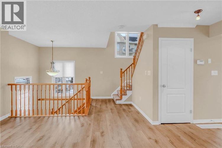 Welcome to this stunning END-UNIT townhome located in the heart of North Galt, surrounded by historic charm, boutique shops, farmers market, the Grand River, restaurants and just steps to elementary school. This bright 2-bed, 3-bath home offers exceptional natural light and the feel of a semi-detached, with a thoughtfully designed layout perfect for live-work flexibility — You have 2 entrances, and 2 balconies perfect for getting some air or relaxing. The ground level provides garage access along with a space ideal for a home office or studio, while the main level features brand-new vinyl flooring in the kitchen and living area, and the upper level includes laundry, and spacious loft that could serve as a rec room, a media loft or additional lounge. With two outdoor deck spaces and an unbeatable location, this end-unit combines lifestyle, function, and comfort in one of Cambridge’s most desirable areas. (id:26452)