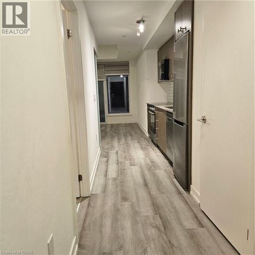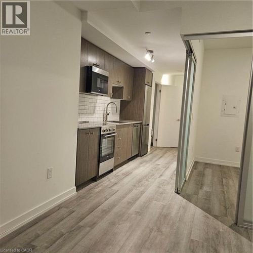 Discover an exclusive, pristine luxury condo in the highly coveted Station Park Condos of Kitchener. This elegant residence offers an urban sanctuary, featuring 1 bedroom and 1 bathroom, blending modern design with everyday practicality. Enter a space where style seamlessly meets comfort. The open-concept living area invites you in, bathed in natural light from floor-to-ceiling windows that provide breathtaking city views. The gourmet kitchen is a culinary haven, equipped with cutting-edge appliances, sleek countertops, and ample storage, making every meal a delightful experience. Unwind in the serene bedroom, thoughtfully designed with high-quality finishes, durable solid surface flooring, and generous closet space to meet your storage needs. The luxurious bathroom exudes sophistication with its premium fixtures and a tranquil ambiance, offering the perfect retreat after a long day. Station Park offers an array of unparalleled amenities within the development. Outdoor features include a dedicated dog park, The Circuit—an innovative outdoor fitness area—and expansive open spaces for relaxation, blending outdoor living with urban convenience. Take advantage of this extraordinary opportunity to embrace an elevated urban lifestyle at Station Park Condos. Immerse yourself in an environment of luxury and sophistication, ideally located near entertainment, fine dining, and efficient transit options. Parking available from the condo Corporation at additional cost. (id:26452)