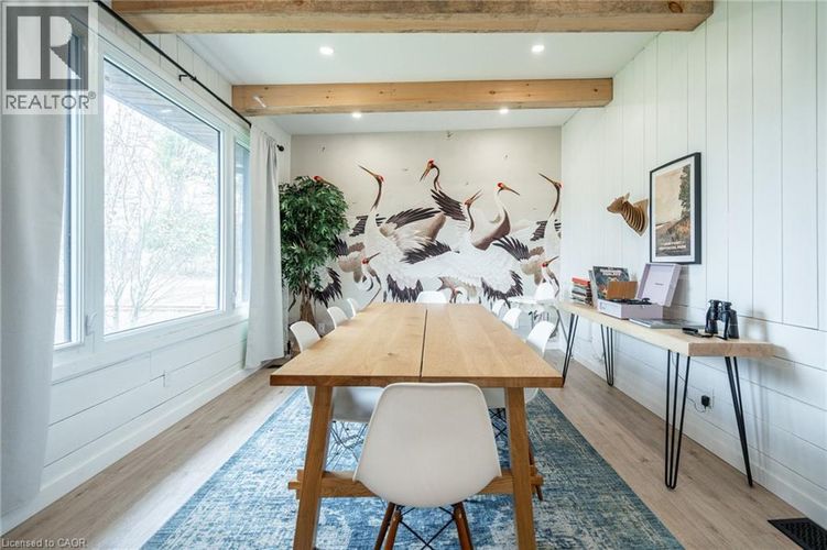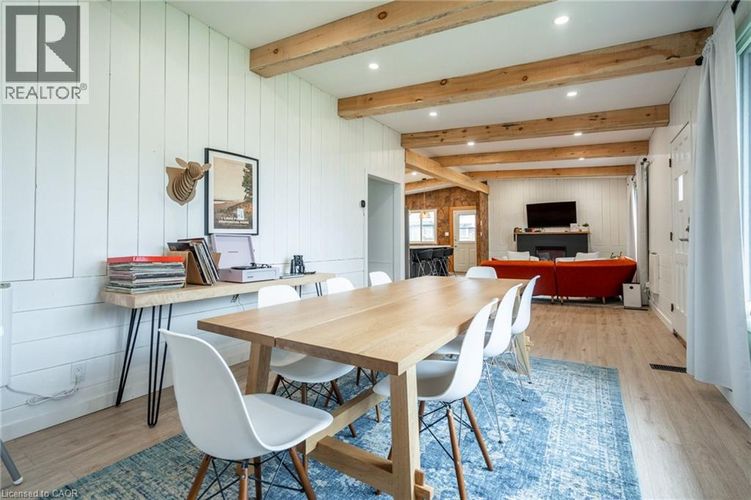 SANDHILL COTTAGE — Year-Round Long Point Retreat on Nearly ¼ Acre, Steps to the Beach Access. Set in the heart of Long Point—one of Canada’s only UNESCO World Biosphere Reserves—this year-round cottage delivers the kind of lifestyle people daydream about on Monday mornings. Sitting on almost a quarter acre with peaceful marsh views, the property hits that perfect balance of privacy, nature, and beachside ease. Inside, the open-concept layout keeps everything bright and social. The living room features a cozy fireplace for cooler nights and flows into a sharp, well-equipped kitchen complete with 6-burner propane range, quartz countertops, a large island with built-in bar fridge and included appliances. SANDHILL COTTAGE earns its name with a standout design moment:a striking crane-themed feature wall in the dining area. It adds personality and creates a memorable focal point that ties beautifully into the natural setting Long Point is known for. The cottage offers 3 sizeable bedrooms, 3 pc. bath and convenient in-house laundry. The primary bedroom opens to a sunroom, giving you a peaceful spot to watch the marsh come alive. Flooring throughout is luxury vinyl plank paired with tasteful area rugs, keeping the space durable, warm, and stylish. Outside, the updated siding gives the home a fresh, low-maintenance exterior. A tiered deck with under-deck storage, a hot tub and a firepit area turn the backyard into a year-round hangout zone. A garage and partial basement add practical storage and workspace—rare perks this close to the lake. Best of all, you’re only steps away from the beach access, making spontaneous swims, sunset walks and long summer days effortless. Long Point offers pristine sandy beaches, boating, fishing, wildlife viewing, nature trails, and world-class birding, with marinas, restaurants, and shops only minutes away. A standout blend of comfort, land, upgrades, and unbeatable location—SANDHILL COTTAGE makes year-round lakeside living wonderfully easy. (id:26452)