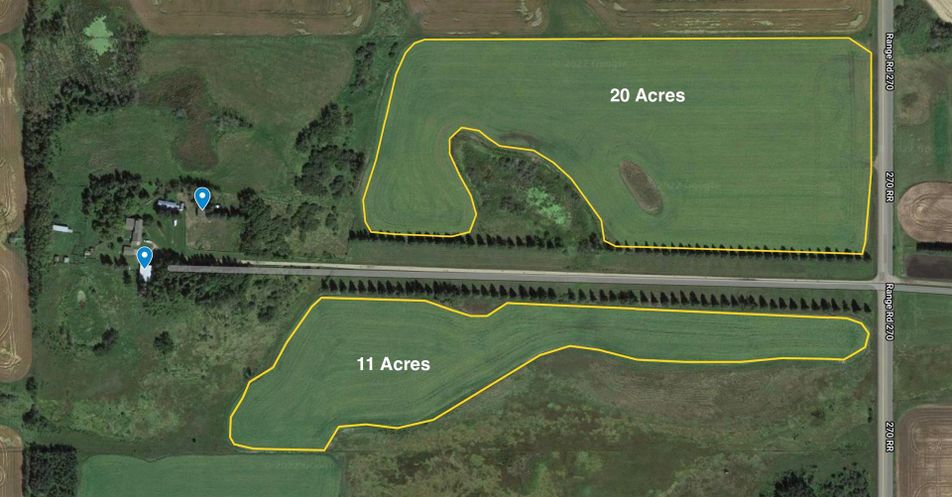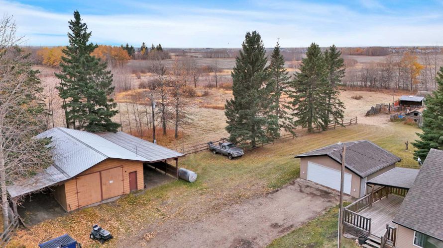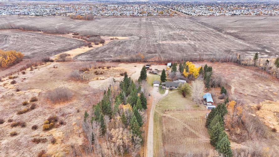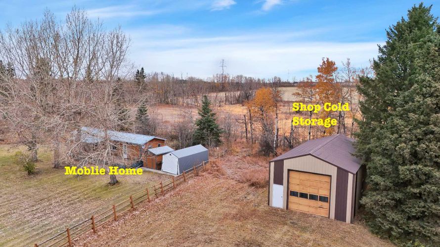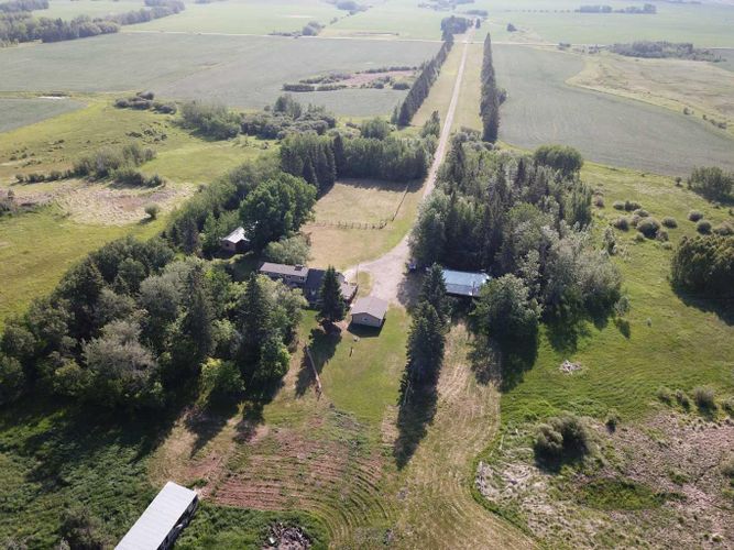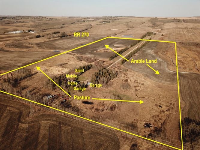 Fabulous opportunity with recent renovation upgrades! Invest in your future and enjoy complete privacy on this 80-acre parcel, located within Red Deer’s intermunicipal district along its eastern boundary. This property offers a wonderful rural lifestyle, a solid investment hold, dual-residence living, and multiple streams of farming income, including livestock, equestrian, solar, tree farming, market gardening, and grain. With its proximity to the city, this is a unique opportunity where your living investment is sure to appreciate over time.The property features a 2-storey main house (built in 1974), a mobile home (1991), a 24'x24' detached garage (1976), a 40'x26' insulated shop with cement flooring, a 50'x24' cold storage pole-style shop (1998), and numerous other outbuildings. The land is level, with approximately 32 acres of arable farmland featuring excellent soil quality, expansive pastures, low-lying areas, treed and brush sections, and a beautiful tree-lined driveway that leads from paved Range Road 270 to the yard site.The main home offers a functional layout with a main floor master bedroom, two living areas (one with a wood-burning fireplace), a kitchen complete with an indoor barbecue, and a renovated 2-piece bath. The expansive bonus room addition features a gas fireplace, patio doors to the south-facing deck, and a bar area perfect for entertaining. Upstairs, you'll find a roomy bedroom with a Juliette balcony, a 4-piece bathroom, and an adjoining space with two additional sleeping areas. The lower level is wide open and offers ample storage, a utility area, and Laundry. The well-maintained mobile home includes 2 bedrooms, 1 bathroom, upgraded vinyl windows (2007), a south-facing covered deck, and a parking shelter.Renovation highlights include new windows for both the house and mobile home (2007), a fully renovated main floor 2-piece bath, and a complete second floor renovation with new doors, trim, and paint. Also a complete bathroom reno i ncluding shower, flooring, vanity, and paint. Additional upgrades include shingles and siding on the house (2011) and a replacement of the septic tank (1992).Zoned A1 Future Urban Development District, this property allows for agricultural and related uses until the land is needed for urban development. This property is a rare combination of lifestyle, investment, income potential, and privacy—an opportunity that rarely comes along! (id:26452)