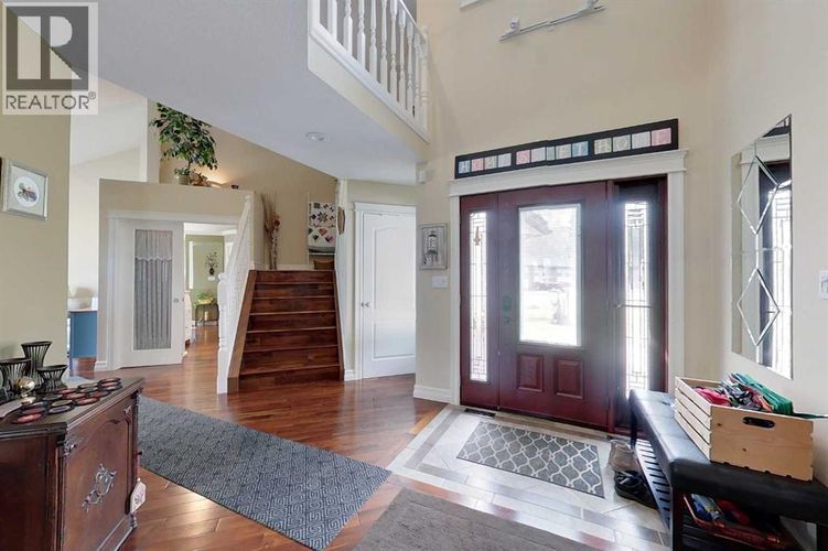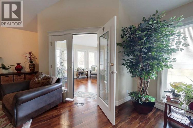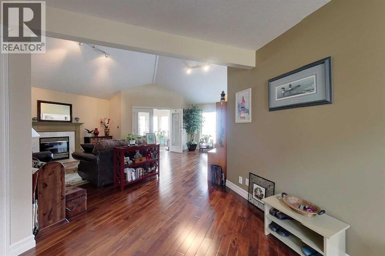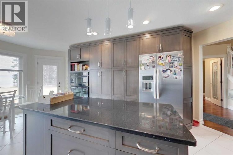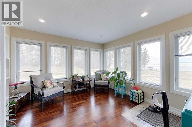 Yowza! Executive Lakefront Living with Every Feature You Could Dream Of – And More! This extraordinary 3700+ sqft estate in Executive Estates, Canyon Creek is truly one-of-a-kind. Nestled on a breathtaking lakefront 3.8-acre lot, this property combines luxury, functionality, and outdoor adventure like no other. The main home offers 4 bedrooms and 4 bathrooms, including a spacious primary suite with hardwood floors, soaker tub, stand-up shower, and stunning lake-facing windows. The chef’s kitchen is a showstopper with rich dark walnut cabinetry, granite countertops, built-in oven, microwave hood fan, countertop stove, and a sunny breakfast nook overlooking the lake. A four-season sunroom adds to the charm and provides year-round relaxation. The original attached garage has been thoughtfully converted into a bright and expansive family room, complete with porcelain tile flooring, large windows, and a cozy pellet stove. Also on the main floor: a home office with built-in cabinetry, laundry room, and a 3-pc bath with a built-in sauna. Head upstairs to find three more generously sized bedrooms and a full bath, all connected by a unique hallway cut-out feature that overlooks the main level. The basement boasts an additional bedroom, a 4-pc bathroom, and a large recreation room—perfect for family movie nights or guests. Outside, this property is an entertainer’s dream: "Toyshop" building with full kitchen, bedroom, and room to park your RVs, quads, or snowmobiles—plus a covered patio for BBQs and gatherings; Detached double garage; a Massive 4-bay woodshop with a walk-in cooler and hooks for the hunting enthusiast; Asphalt driveway leads to all buildings, offering convenience and a clean aesthetic; Backup generator for peace of mind; Rubber shingles on all buildings for uniformity and function, the hot tub on the deck for ultimate relaxation; Underground sprinkler system with 100% coverage of the entire property. Whether you're a hobbyist, entertainer, nature lover, or a ll of the above, this property delivers luxury, space, privacy, and functionality in equal measure. This is more than a home—it’s a lifestyle. You have to see this property, and experience the unmatched value of this Canyon Creek gem! (id:26452)