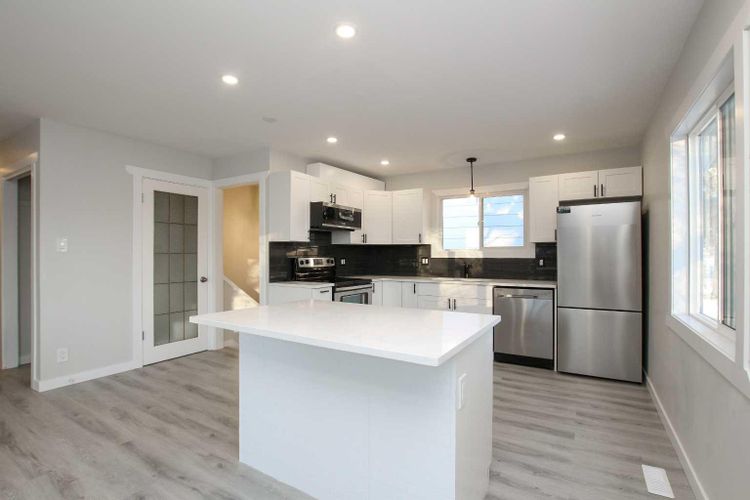 IMMEDIATE POSSESSION AVAILABLE ~ RENOVATED & FULLY DEVELOPED 4 BED + DEN, 2 BATH BUNGALOW ~ DOUBLE DETACHED GARAGE & RV PARKING ~ This stylishly renovated home is move in ready and features new windows, flooring, paint, hot water tank (2024), furnace (2024), kitchen and bathrooms, garage shingles (2025), house shingles (2019) ~ The open concept main floor layout features vinyl plank flooring and an abundance of south and west facing windows that fill the space with natural light ~ The kitchen offers plenty of white cabinets, tons of stone counter space including an island with an eating bar, full tile backsplash, window above the sink and a wall pantry ~ The primary bedroom can easily accommodate a king size bed and has ample closet space ~ Two additional main floor bedrooms are both a generous size ~ Updated 4 piece bathroom has built in shelving and a convenient laundry chute ~ Mud room with separate entry and access to the backyard and the fully developed basement ~ Spacious family room has recessed LED lighting ~ 3 piece bathroom with a walk in shower and linen closet ~ 4th bedroom, den with a closet, laundry and ample storage complete the basement ~ The backyard is landscaped with mature trees, shrubs and perennials and is fully fenced with back alley access ~ 24' x 24' detached garage with two overhead doors has a large gravel parking pad with space for an RV ~ Front drive offers additional off street parking ~ Located close to multiple schools, parks, playgrounds, GH Daw Centre with public swimming, skating and more ~ Walking distance to all other amenities including shopping, dining, medical ~ Easy access to downtown and Highway 2. (id:26452)