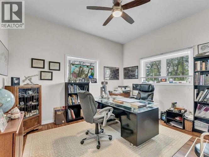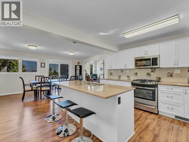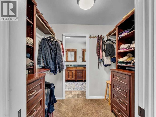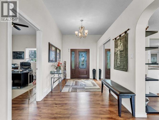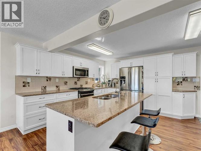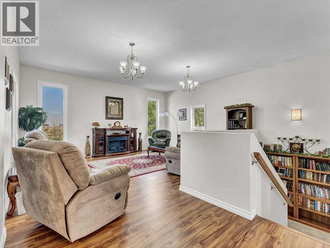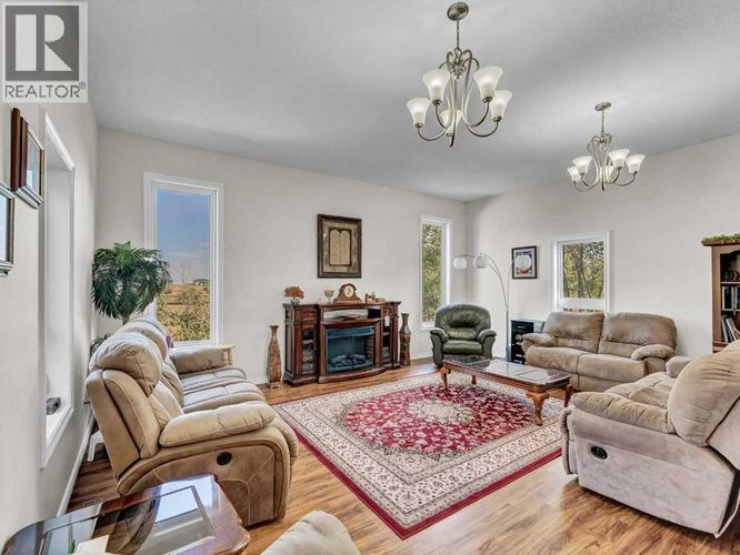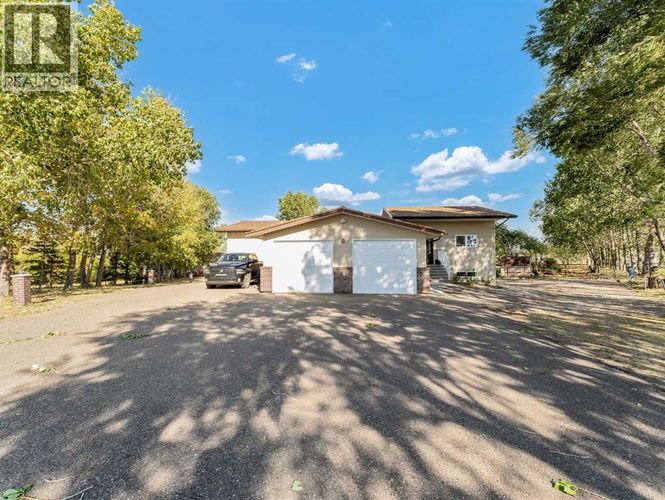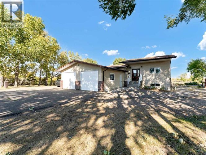 Beautifully set on 3.24 acres in Eagle Butte Estates, just minutes from Medicine Hat. This impressive 1800sq ft Walkout bungalow (plus fully finished lower floor) offers modern country living and has been completely rebuilt within the last 10 years, including wiring, plumbing, interior, and exterior. A spacious entry with 10ft ceilings welcomes you into a bright home office, a granite kitchen with large island, full appliance package and huge dining area that opens to a deck spanning the back of the home to capture the morning sun. The upper deck has a BBQ with gas hook-up and there is a matching lower deck also spanning the back of the house. The living room, also with 10 ft ceilings, features large windows and a cozy electric fireplace, while the primary suite offers a walk-in closet, 5-piece ensuite and deck access. The fully developed, wheelchair accessible walkout basement includes a family room, games area, gym, two additional bedrooms, bathroom with large wheelchair accessible shower. Additionally, there is a room lined with built-in cabinets that is currently being used as a massage spa. This space is ideal for any home-based business. Outside, the property is nearly fully fenced and landscaped with an irrigation system to 90% of the perimeter trees that also waters the fenced garden and berry patches. There is a paved walking path with benches and numerous outbuildings including a heated, attached double garage, a large shop with in-floor heat, a winterized chicken coop, a semi-trailer for storage, a shed, and even a unique observatory with heat, A/C and retractable roof. This building could be repurposed as an office with built-in storage area. Surrounded by mature trees, with city water and access to a shared dugout, this property combines privacy, functionality and endless opportunity for both work and leisure. (id:26452)