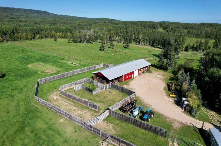 An extraordinary opportunity to acquire a spectacular 158-acre ranch in the heart of Alberta's best wilderness. This rare offering features a custom-built, full-log luxury home and direct border access to thousands of acres of government Crown Land—perfect for the serious rancher, hunter, or recreational enthusiast.The ranch is currently home to a successful, world-class Elk operation. Pasture, fence, barn, and watering bowls in operation. These could also be converted for horses, cows, and other large livestock. The Main Home is a Masterpiece: a truly stunning full-log residence built with massive logs and featuring high, vaulted ceilings. Located high on the quarter section, providing maximum privacy and panoramic views. Spacious entertaining kitchen with an enormous island, walk-in pantry, and built-in, high-end appliances. Grand Great Room and dining area designed to host large gatherings. Main floor luxury Master suite with a heated-floor ensuite. Unique design with two central half-log staircases leading to three levels of living space. Heated double-car garage and a secure, paved asphalt driveway with Texas Gate entrance.Farm Infrastructure: In addition to the main residence, the property includes a second dwelling, a barn, a garden, and essential outbuildings, providing excellent operational support for an established ranching lifestyle. (id:26452)