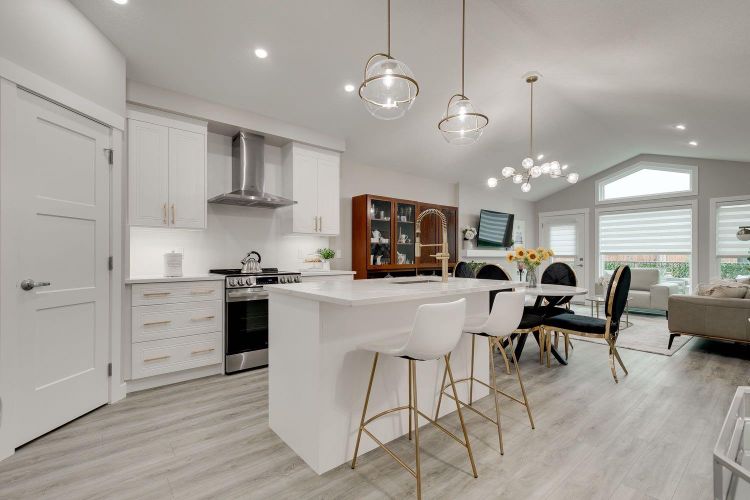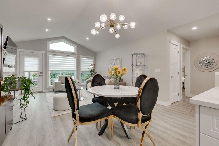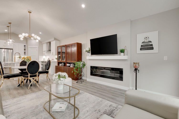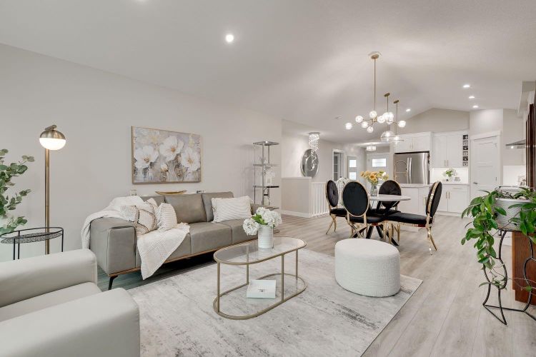 TURN-KEY LUXURY BUNGALOW | ONE-LEVEL LIVING. Welcome to this meticulously crafted 2-bed, 2-bath, move-in-ready bungalow in one of Diamond Valley’s most sought-after communities, just 30 minutes from Calgary. Perfect for retirees, downsizers, or professionals seeking luxury, small-town charm, and convenience.Inside, enjoy vaulted ceilings, sun-filled open spaces, and durable luxury vinyl flooring throughout. The gourmet kitchen features quartz countertops, a large island, walk-in pantry, and upgraded lighting — perfect for entertaining family and friends.Relax in the living area with electric fireplace, or retreat to the primary suite with spa-inspired ensuite and full-tile walk-in shower. A second bedroom and full bathroom offer flexible space for guests or a home office.Every detail blends practicality with luxury & comfort: main-floor laundry with sink off the garage, California Closets, Hunter Douglas blinds, and a spacious covered front porch with low-maintenance composite decking and upgraded vinyl siding. Triple-pane windows enhance energy efficiency, keeping the home comfortable year-round while lowering utility costs.The extra-large garage is drywalled, insulated, and features high ceilings for larger vehicles or added storage. The unfinished basement offers large windows, roughed-in plumbing, and tucked-away mechanicals, expanding the home’s total living space to 2,200 sq. ft.Outside, enjoy a private back deck with barbecue hookup, stroll the 7 km creekside walking trail with scenic mountain views. Close to nearby hospital, golf course, and local markets.Rarely available and move-in ready — luxury, comfort, and lifestyle await at Riverwood Estates. Book your private showing today! (id:26452)
