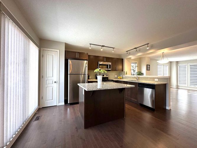 Welcome to this RARE OPPORTUNITY to own a Freshly Renovated Move-in-ready 2-bedroom, 2.5-bathroom, double garage END UNIT townhome in Muskoka! Perfectly located across from Auburn Bay Station Shopping Centre, walking distance to off-leash park, schools, playgrounds, tennis court, and just steps from Auburn Bay’s 43-acre lake, private parks, and beaches. This home offers a perfect balance of quiet, convenience and leisure. Step inside, you’ll be greeted by a modern, warm, cozy, bright, and welcoming atmosphere with FRESH PAINT THROUGHOUT, NEW WINDOWS BLINDS, NEW PARTIALLY FINISHED BASEMENT, and COUNTLESS UPGRADES. The main floor boasts a spacious open-concept living area with expansive sunlit windows and beautiful hardwood floors throughout. The stylish kitchen showcases granite countertops, backsplash tile, modern appliances, a large island, and ample counter space. The kitchen leads to a private balcony and a flex room with a versatile space for a dining area or home office. Upstairs, you’ll find two spacious master bedrooms, each with its own 4 piece en-suite bathroom and walk-in closet, providing ultimate privacy and comfort for homeowners, roommates, or guests. Full laundry room/linen closet is also located on this upper level, providing absolute convenience. The partially finished basement, with plenty of storage options or fitness option, connects to the oversized double attached garage for secure parking and additional storage space. Incredible Upgrades throughout include: Fresh paint throughout; New windows blinds; New partially finished basement; Bathrooms with granite countertops and two added drawers in vanity; Hardwood, tile and carpet flooring; Huge upgraded kitchen with beautiful granite counter tops, gorgeous kitchen backsplash tile, 12” extended island counter top, and stainless steel appliances; Balcony off the main level; Outlet to the basement; Barbeque gas line rough-in for easy barbeque entertainment. Living in the sought-after LAKE community o f Auburn Bay and Auburn Bay Station Shopping Centre means convenient shopping; lake-centered lifestyle with walking trails, parks, playgrounds, year-round activities at the community lake; walking distance to the South Health Campus; quick access to Stoney Trail and Deerfoot Trail; easy access to downtown: BRT bus (302), and near future LRT stations, and so much more! Whether you are first-time buyer, downsizer, or investor, this Freshly Renovated, Professional cleaned, and Move-in-ready End-unit townhouse is the perfect blend of quiet, comfort,modern style, and unbeatable location! Don’t miss your opportunity! Welcome to your new home with QUICK POSSESSION! (id:26452)