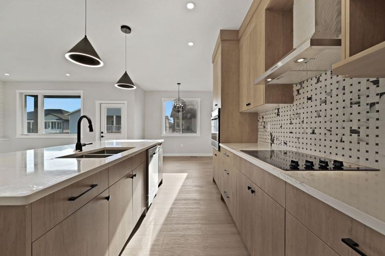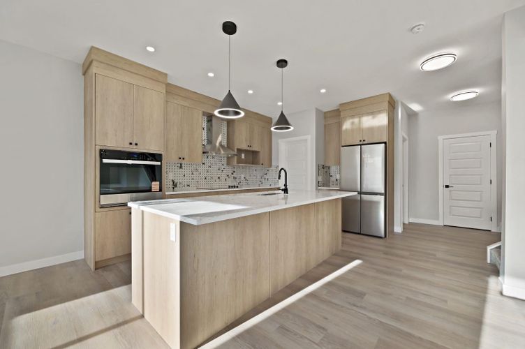 Discover this stunning 2025-built home that perfectly blends contemporary design with everyday functionality. Featuring a triple attached garage with 220V power, this property is ideal for today’s modern lifestyle.Step inside to an open-concept main floor showcasing a chef-inspired kitchen complete with a large island, quartz countertops, built-in wall oven, electric cooktop, stylish range hood, and a convenient walk-through pantry. The dining area is illuminated by an elegant LED chandelier and flows seamlessly into the spacious living room, highlighted by a white feature wall and designer-style electric fireplace — perfect for entertaining or relaxing.The main floor is finished with sleek black Moen fixtures, LED lighting throughout, and a chic half bath. Upstairs, enjoy a bright bonus room and three spacious bedrooms, including a luxurious primary suite with a 4-piece ensuite. The additional full bath features Jack & Jill sinks and quartz counters, making it ideal for families. Convenient upper-level laundry adds to the thoughtful layout.A separate side entrance leads to a basement with rough-ins for future development — offering great income potential or flexibility for expansion. Outdoors, enjoy the covered back deck with a natural gas BBQ line, perfect for year-round entertaining.This move-in ready home in the vibrant community of Olds combines style, comfort, and opportunity. Don’t miss your chance to make it yours! (id:26452)