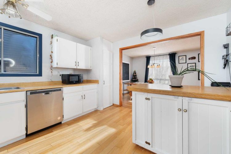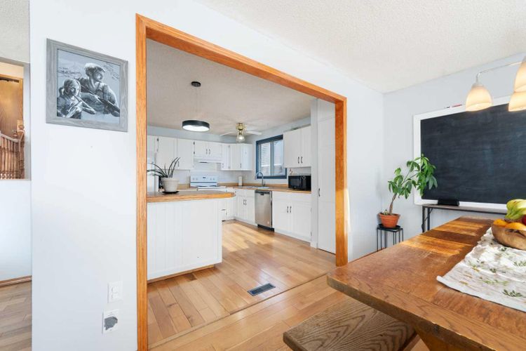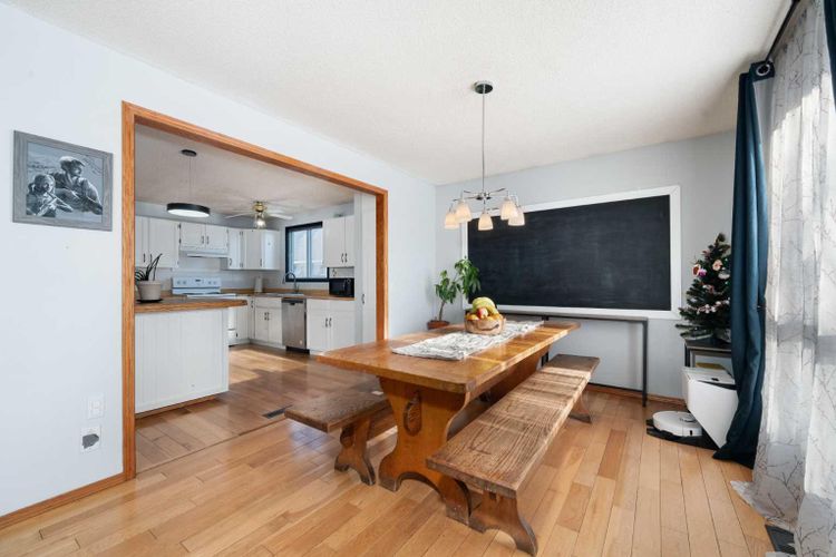 Welcome home to this charming and welcoming updated four-level split, perfectly situated on a quiet street in the desirable community of Maplewood, Strathmore. Offering spacious living, smart design, and fantastic outdoor amenities, this property is truly move-in ready and ideal for a growing family. As you enter, you'll be greeted by the bright and open concept main level, featuring a seamless flow between the living and dining areas, perfect for entertaining. The heart of the home is the large, functional kitchen featuring butcher block countertops and an abundance of cabinet and counter space for easy organization and meal prep. The upper floor provides a tranquil retreat with two generously spacious bedrooms and a shared, well-appointed 4-piece main bathroom, ensuring comfort for the whole family. The first lower level is dedicated to relaxation, featuring a sun-filled family room with patio doors offering direct, walk-out access to the beautifully landscaped backyard, blending indoor and outdoor living. This level also includes a bright third bedroom and a convenient 3-piece bathroom, ideal for guests or a home office. The lowest level—the fully finished basement—adds incredible value and versatility. It boasts a fourth distinct living space, a large recreation room perfect for games, and plenty of utility/storage space with dedicated laundry facilities. Recent updates include a brand new roof and shingles that were installed in July 2025 on both the house and the oversized garage. Furthermore, three new rear windows in the bedrooms feature triple-pane glass, significantly enhancing energy efficiency and comfort. The exterior is equally appealing. The property features an oversized single detached garage that is nearly tandem in depth, offering excellent storage potential. The extra-long driveway is a huge asset, providing parking for an additional three vehicles. Location is key, and this home delivers. Situated on a quiet street, you're literally around the c orner from a neighbourhood park and local schools, plus a fantastic sledding hill for winter fun. For year-round enjoyment, the Strathmore Aquatic Centre is just a couple of minutes away. This Maplewood gem perfectly balances comfortable family living with an ideal location and crucial modern updates. Don't miss your chance to call this exceptional property home! (id:26452)