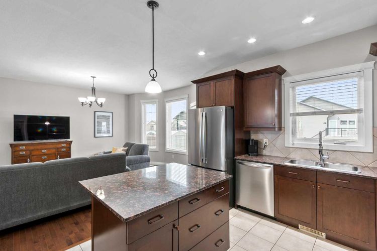 Welcome to this charming and spacious 1,673 sq ft bungalow featuring a rare lofted bonus room above the garage and numerous upgrades throughout. The main floor offers an inviting open-concept layout with a large kitchen that includes granite countertops, a corner pantry, abundant cabinetry, and a generous island overlooking the living and dining areas—perfect for both daily living and entertaining. This level also includes a comfortable bedroom, a full 4-piece bathroom, and the primary bedroom complete with a 3-piece ensuite. Upstairs, the expansive loft above the garage provides an ideal space for a family room, office, or hobby area. The fully developed basement includes an illegal mother-in-law suite with two bedrooms, a 4-piece bath, a spacious living and recreation area, and a kitchen equipped with a fridge, countertop cooktop, microwave, and sink, plus a large mechanical room and additional under-stairs storage. The home features many upgrades such as in-floor heating in the basement and garage, epoxy flooring and 9 ft ceilings in the basement, hot and cold water taps in the garage, a BBQ gas line on the back deck, new shingles and eavestroughs installed in 2025, and a hot water on demand system that is approximately three years old. Outside, enjoy the beautiful front veranda, landscaped yard, large back deck, and oversized storage shed—making this property both functional and inviting. (id:26452)