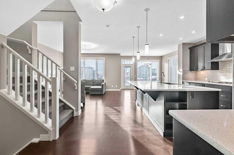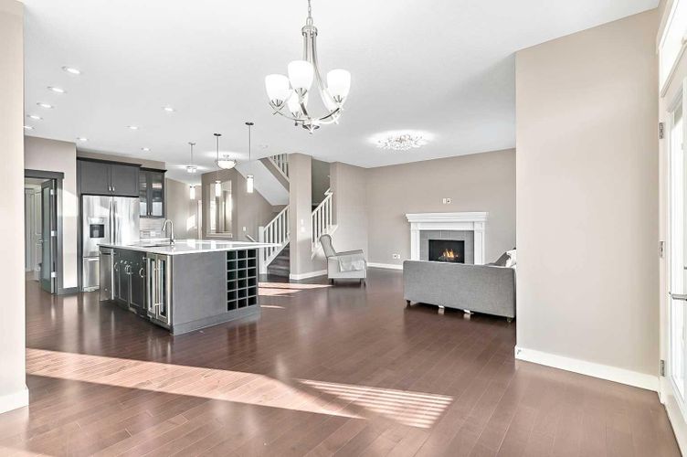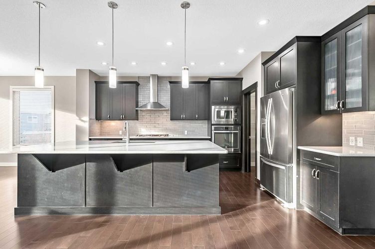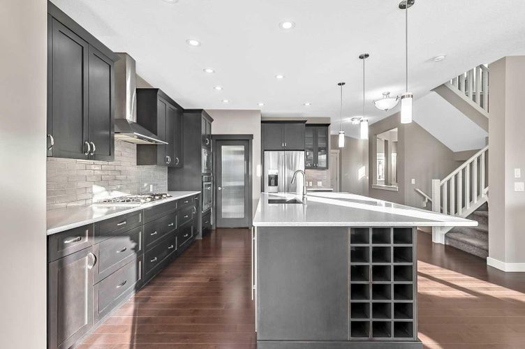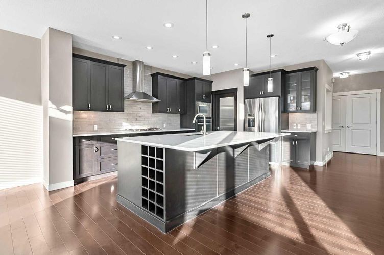 Welcome to 90 Mount Rae Heights in Mountain View! This beautiful 2429.5 sq. ft. (living space above grade), two-story home offers 4 bedrooms, a bonus room with skylights, plus an oversized double garage and is ready for you to move in. Showcasing a well-thought-out floor plan with no wasted space, the bright, open-concept layout, enhanced by NATURAL light flows seamlessly into each space through all the oversized, south-facing windows. Enjoy style and perfection throughout each floor: beautiful hardwood flooring an inspired family kitchen with an oversized, family-size island featuring a sink, wine fridge, built-in dishwasher & storage, premium stainless-steel appliances, 5 burner gas top, built in oven and microwave, sleek dark cabinetry, quartz countertops, a walkthrough pantry to the mudroom with a doggy shower, and access to the oversized double garage. The main floor also offers, a den at the front entrance, a living room with a stunning ceiling-mount light and a gas fireplace to cozy up to through the winter months. The dining room provides ample space to comfortably accommodate large family gatherings and access to the deck. The upper level features a spacious bonus room with skylights and a semi-vaulted ceiling. The primary bedroom includes a 5-piece bath and a walk-in closet—a perfect place to start or end your day. 3 more nicely sized bedrooms, a 5-piece bath, and a laundry room complete this level. The unfinished basement awaits your future development. All of this is located in a great location and a family neighborhood. This is a home to fall in love with and make it your New Year's wish!