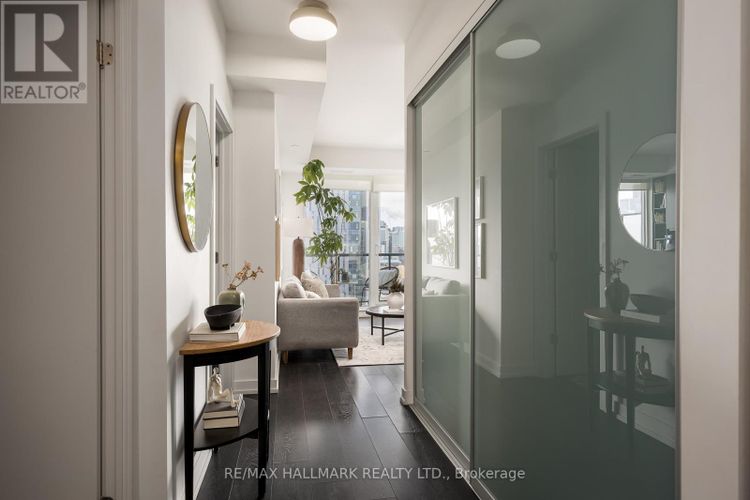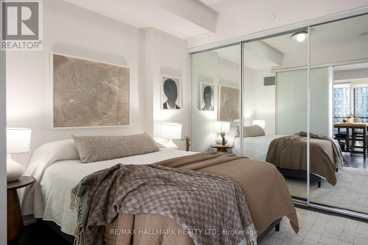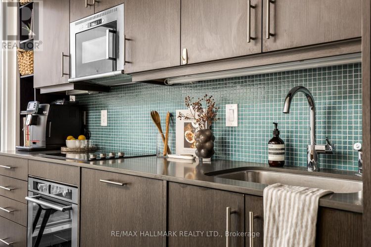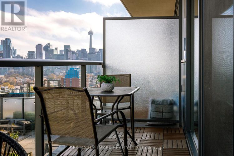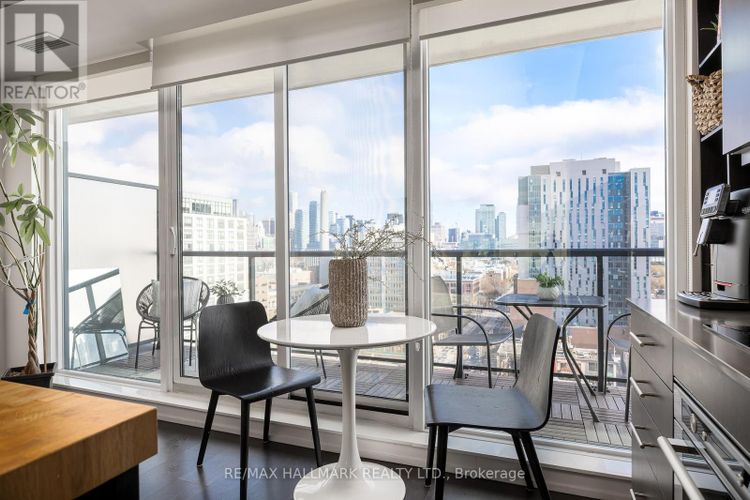 This rarely available 17th floor lower-lower penthouse dream is the antithesis to many other condominiums that define much of downtown Toronto's current housing landscape. Are you tired of staring into someone else's living room? Me too. Up here an expansive, east-facing cityscape is like a mug of warm milk and honey for your eyes. This thoughtfully designed, up-sized 1+Den layout represents a far cry from its shoebox-like cousins coming in at under 600 square feet: bright open spaces, loads of smart storage & high end, quality finishes throughout. Imagine entertaining friends inside your homey space and then walking out on to a large, 85 sq. ft. open balcony to take in that dynamite view. Or enjoying a coffee in solitude as the morning sun peeks up over the horizon. A built-in Murphy bed in the den/office provides effortless hosting or roommate possibilities and the building itself is so quiet and peaceful, you'll often think you're the only one that lives there. Superbly located just steps from Kensington Market, Toronto's funkiest shops, trendiest restaurants and most sought after holes in the wall are right at your doorstep. With T&T supermarket in the building, there is no need to fear winter grocery shopping - going outside is completely optional. As far as the TTC, you may actually enjoy taking it because it's so darn convenient. Your home should make you feel extraordinary. Location, layout and lifestyle combine masterfully here to deliver the urban living experience you've been dreaming of. (id:26452)
