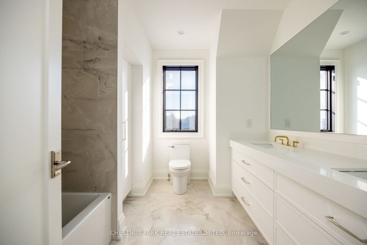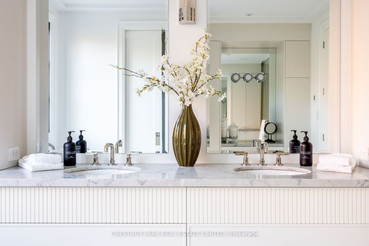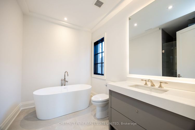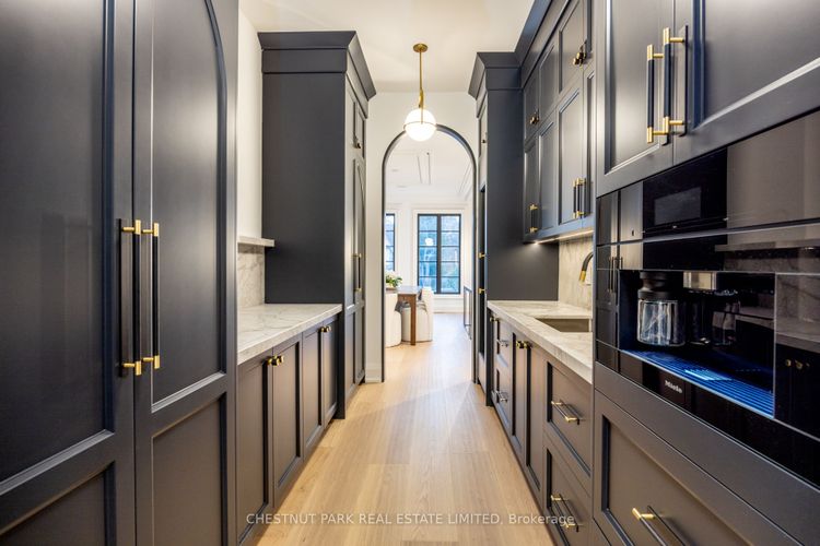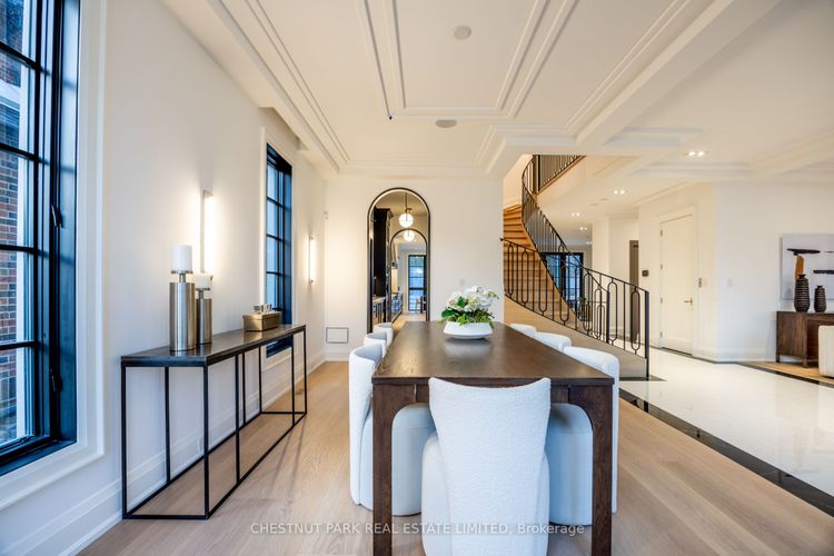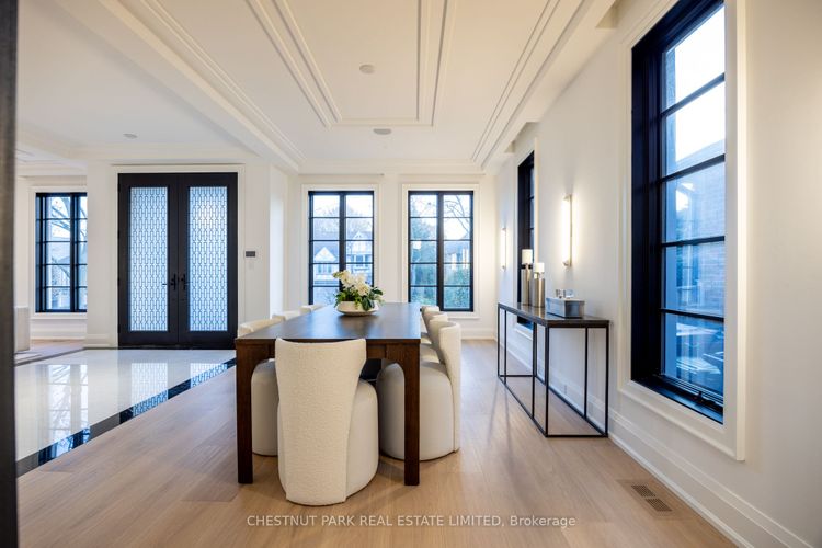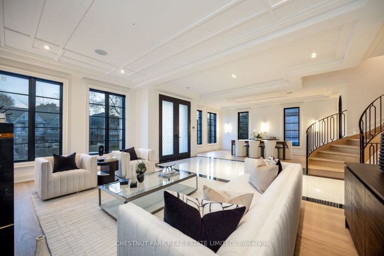 A newly built custom residence, designed by Spragge Architects, is perfectly positioned with southern exposure and captivating winter city views. Exemplifying exceptional craftsmanship in the heart of prestigious Forest Hill. This 6-bedroom, 8-bathroom home spans over 5,200 sq ft of refined living space, blending timeless artistry with the finest materials. From the moment you arrive, a heated walkway leads to an impressive entrance framed by a brick and Indiana limestone facade. Inside, soaring 10.5-foot ceilings, a sweeping curved staircase, and a grand stone hallway set a tone of understated elegance. The formal oversized living and dining rooms feature coffered ceilings, a statement fireplace, and a butler's pantry designed for seamless entertaining. Sunlight fills the principal rooms, overlooking manicured gardens and a saltwater pool, while a private elevator offers effortless access to every level. Enter through the private side entrance from the driveway into a well-appointed mudroom that combines function and style, adjacent to a striking powder room with marble floors and an integrated marble sink. The chef's kitchen, anchored by a generous eat-in island and breakfast area, connects to a welcoming family room with custom built-ins, a coffered ceiling, and a walk-out to the private yard. Upstairs, the Primary suite offers a tranquil retreat with a private balcony, custom walk-in closet with exquisite cabinetry, and spa-inspired ensuite. Two additional bedrooms, each with designer finishes and ensuite bathrooms, complete this level. The top floor adds versatility with two more bedrooms, a full bath, an office or play space, and a sunlit laundry room with abundant storage. The lower level impresses with a large recreation room, wet bar, gym, guest/nanny suite, powder room, and ample storage & radiant heating. Just steps from Forest Hill Village, Cedarvale Park, and only 15 minutes to Yorkville. Thirty-Six Ava Road defines modern luxury and effortless living. (id:26452)