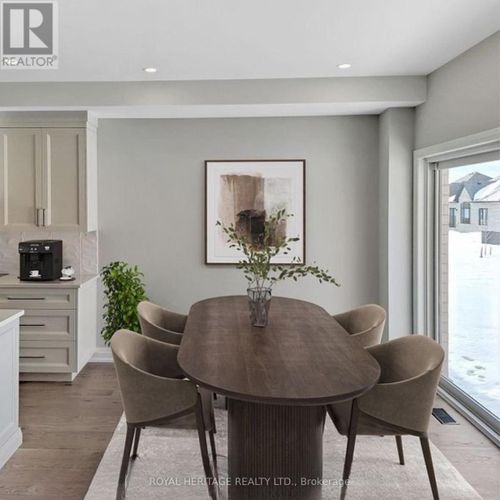 Step into elevated living with this newly built masterpiece by DeNoble Homes where refined craftsmanship, elegant finishes, and intelligent design come together seamlessly. Bathed in natural light, the open-concept floorplan is enhanced by soaring 9-foot smooth ceilings that create an airy, sophisticated ambiance. The designer kitchen is both functional and striking, featuring a quartz island, sleek pot drawers, and a generous pantry perfect for both everyday living and effortless entertaining. The primary suite is a private sanctuary, complete with a spa-inspired ensuite boasting a freestanding tub, glass-enclosed shower, and double vanity. Additional highlights include a convenient second-floor laundry room, a spacious basement with oversized windows and high ceilings, and upgraded 200-amp electrical service. With a fully drywalled garage and a premium location near top-rated schools, scenic parks, and everyday amenities not to mention quick access to the 407, 412, and 401this home offers an exceptional lifestyle without compromise. ** This is a linked property.** (id:26452)