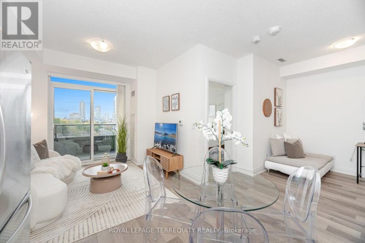 Sleek 1+Den condo with a functional layout and modern finishes. This bright suite features 9- ft ceilings, wide-plank flooring, and floor-to-ceiling windows that bring in natural light throughout the day. The contemporary kitchen includes quartz countertops, subway tile backsplash, stainless steel appliances, and a large peninsula with room for dining and meal prep. The bedroom offers a full double closet and large window. The den is separate and versatile-ideal for a home office, guest space, or nursery. Enjoy the outdoors on your private balcony, a perfect spot for morning coffee or evening downtime. In-suite laundry and one underground parking space are included. Amenities: fitness centre, yoga studio, party room, outdoor terrace with BBQ area, visitor parking, and 24-hour concierge. Prime location: steps to TTC, minutes to Hwy 401/404, Fairview Mall, Agincourt GO, parks, schools, dining, and quick access to Seneca and Centennial College. Move-in ready and very well maintained. (id:26452)