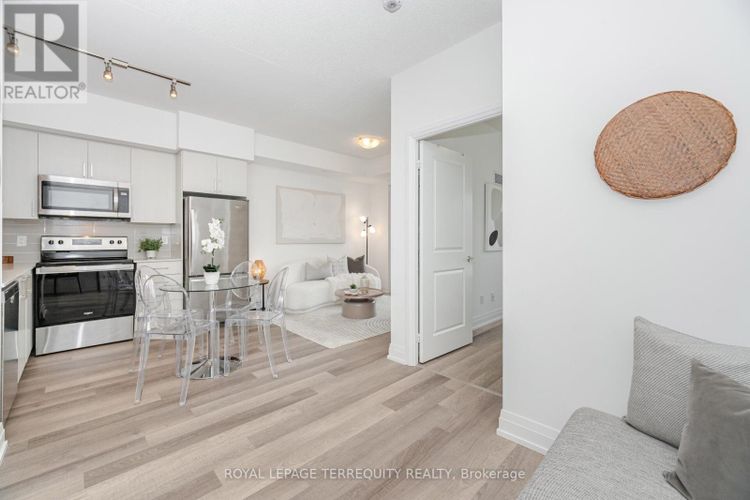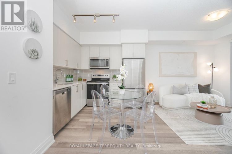 Welcome to 3121 Sheppard Ave E, unit 509. A sleek, stylish 1+Den condo. This bright, open concept suite offers 9-ft ceilings, wide-plank flooring, and floor-to-ceiling windows that flood the space with natural light. The modern kitchen features quartz countertops, a subway tile backsplash, stainless steel appliances, and ample open space perfect for casual dining or entertaining. The spacious bedroom includes a double closet and a large window, while the versatile den can serve as a home office, guest space, or nursery. Step out to your private balcony and enjoy the peaceful view. A perfect spot for your morning coffee or evening unwind. Thoughtfully designed with a functional layout, this unit also includes in-suite laundry and one underground parking space. Enjoy top-notch building amenities, including a fully equipped gym, yoga studio, party room, outdoor terrace with BBQ area, visitor parking, and 24-hour concierge. Located steps to TTC, minutes to Hwy 401/404, and close to Fairview Mall, Agincourt GO, parks, schools, and dining options. Quick access to Seneca and Centennial Colleges. Move-in ready, impeccably maintained, and ideally located. This is the one you've been waiting for! (id:26452)