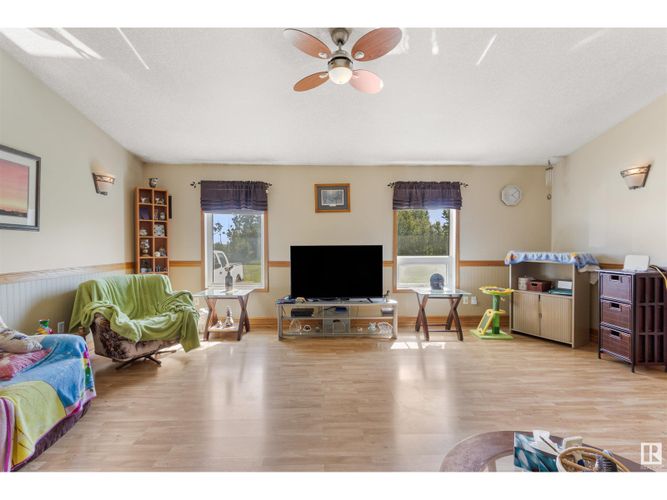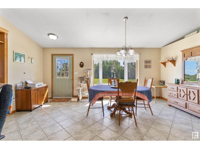 Situated on 9.24 acres, this bright and spacious bungalow has everything you need. The oversized single garage is heated and has laundry with additional laundry hookups in the utility room. There are four bedrooms, with the primary having a unique option of French door access to another bedroom, perhaps the perfect nursery set up? There is a 3 pc and 4 pc bathroom on either end of the home. The center of it all is the country pine kitchen with ample cupboard space and the gorgeous dining room with bay window! And don't forget the large living room with vaulted ceilings. Let's move on to the versatile shop! Measuring 100ftX30ft the possibilities are endless! There is the ability to hook up in-floor heat with four thermostats throughout. The south side of the shop is set up as an office, the middle has a room set up for wood work, and the large bay area with two overhead doors has a wood stove, two horse stalls and incredible space. There is a second approach for road access to the shop as well! (id:26452)