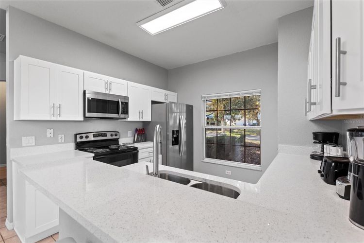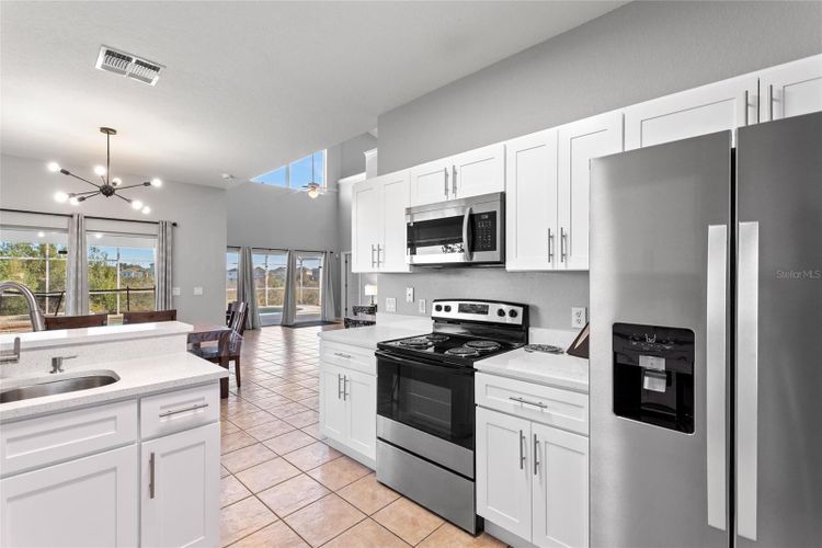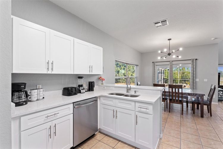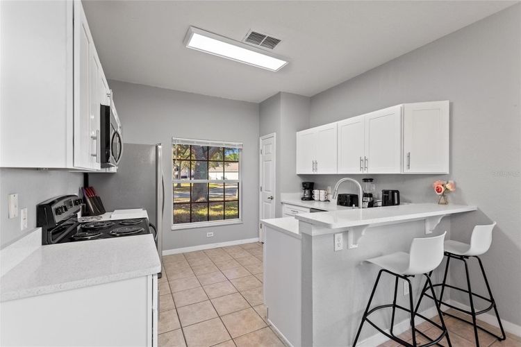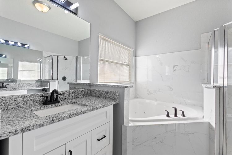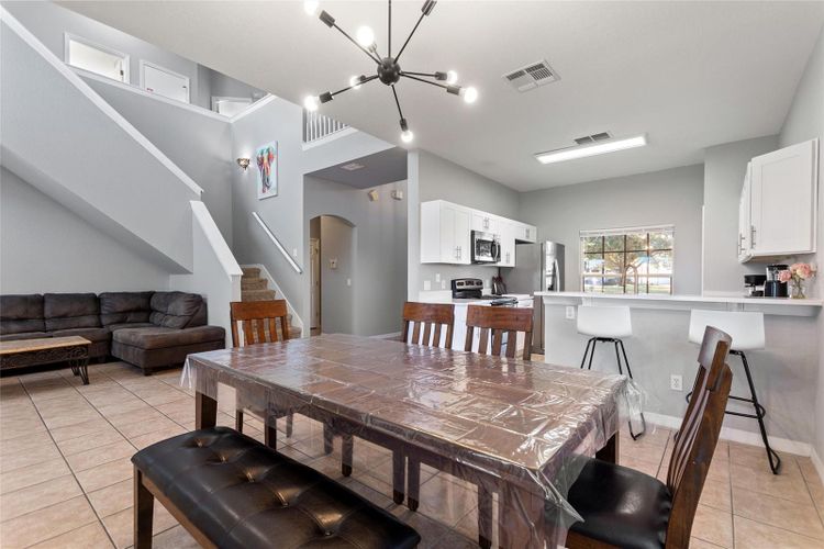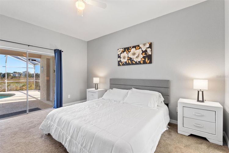 Welcome to The Abbey at West Haven! Step into this beautifully refreshed and newly staged, fully furnished 5-bedroom, 4-full-bath, 2-half-bath pool and spa home located on a private cul-de-sac in the highly sought-after gated community near ChampionsGate. The owner recently enhanced the property with upgraded furnishings and light staging—giving the home a brighter, cleaner, and more updated feel throughout. This residence is ideal as a primary home, vacation home, or income-producing short-term rental or long-term rental. With no CDD, strong rental potential, and a long list of recent upgrades, this home delivers exceptional value. The home features a modern, updated kitchen with white cabinetry, quartz countertops, and new microwave, dishwasher, and refrigerator—a stylish refresh that pairs perfectly with the bright and open layout. Enjoy two primary suites, including a first-floor primary with a fully renovated en-suite offering a separate tub and shower, dual vanities, and bidet. A second primary suite awaits upstairs along with spacious guest bedrooms and two full bathrooms, each with dual sinks and tub/shower combinations. Tile flooring flows through the main and wet areas, while the bedrooms feature plush carpet installed just two years ago. The upstairs loft/flex space is perfect for a home office, media room, or game room. Recent Upgrades Include: Fresh interior paint (within last 2 years) Updated lighting fixtures (2023) Smart thermostat Renovated pool bath (approx. 2 years old) New roof (approx. 2 years old) New pool screens Full-size washer & dryer Two car garage with stone paver driveway Step outside to your private screened-in pool and spa with no rear neighbors, extended pool deck, and outdoor half bath—perfect for entertaining. The HOA includes basic cable, internet, lawn care, exterior pest control, gated security, community pool, fitness center, and tennis courts—delivering convenience and peace of mind. Located only 20 minutes from Walt Disney World, with quick access to I-4, US-27, shopping, restaurants, golf courses, and all that Central Florida has to offer. This refreshed, fully furnished home blends comfort, style, and strong investment potential in one of the area’s premier gated communities. Don’t miss your opportunity to own in The Abbey at West Haven!