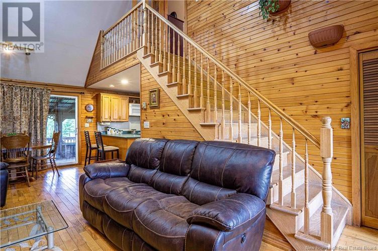 Welcome to this beautiful Riverbend log home built with premium Eastern White Cedar logs that are precision milled and cut to perfection. Riverbends signature triple-seal system offers exceptional energy efficiency designed for year-round comfort. Inside the home, you will find a spacious kitchen with oak cabinetry an eat-in dining area and cosy living room with new electric fireplace. Off the eat-in dining area is an enclosed back deck perfect for relaxing, enjoying your morning coffee or evening sunset. A main-level bedroom, full bath, and workstation add function to this level. While the lower level offers a finished family room, a versatile bonus room ideal for a home gym, office, or playroom and laundry/utility room with laundry chute complete this level. Upstairs, the primary bedroom provides a quiet retreat. Off the attached double garage you will find a bonus area with half bath, currently used for storage, but the potential for a home business or guest suite. Located approximately 20 minutes to Hartland, 25 to Woodstock, 45 minutes to Fredericton, 5 minutes to Indian Lake, 15 minutes to Ayers Lake Lookout, 15 minutes to Crabbe Mountain Ski Hill and close to NB Snowmobile Trail. This home is perfect for those seeking peaceful country living with access to outdoor adventure. Dont miss your chance to own this lovely log home in the countryside. This one is a must see! (id:26452)