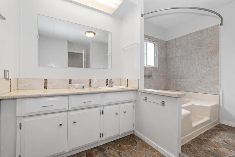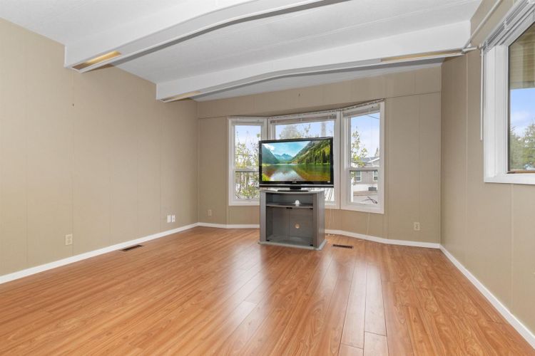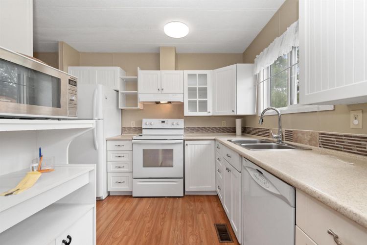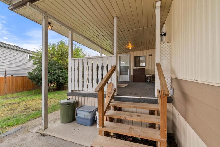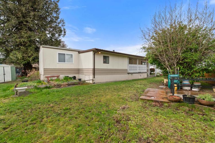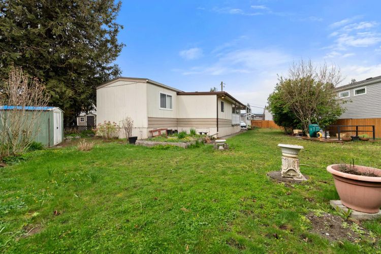 Welcome to one of the largest private yards in Maple Meadows! This 2-Bedroom manufactured home located in the heart of a well-maintained park in Sardis, boasts a prime corner lot location with a spacious backyard. You're sure to enjoy this peaceful community in your 2 bed home with 1 bathroom with oversized, easy-access tub. Easy care laminate flooring, updated windows, and fresh white kitchen cabinetry add a modern touch to the home. Plus you're located just a quick walk away from local shopping centers, parks, and coffee shops. Enjoy your days soaking in sunlight in your private backyard that is perfect for gardening. Small dogs allowed, no cats. Come take a look today! (id:26452)