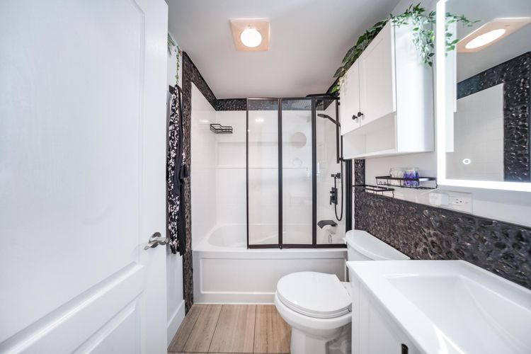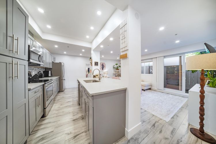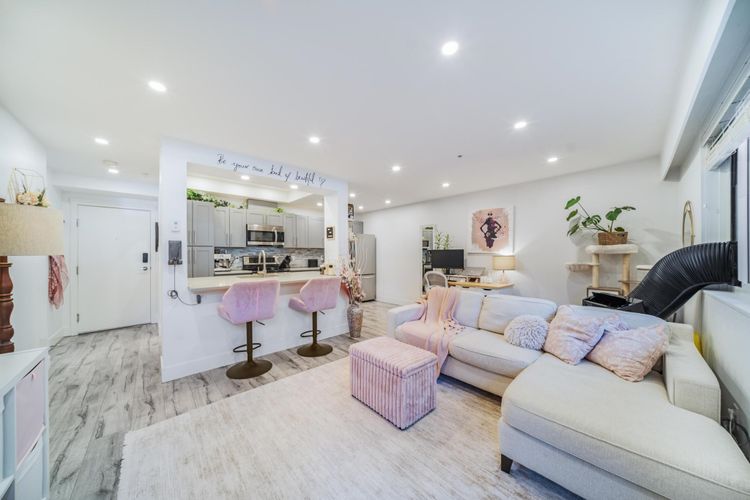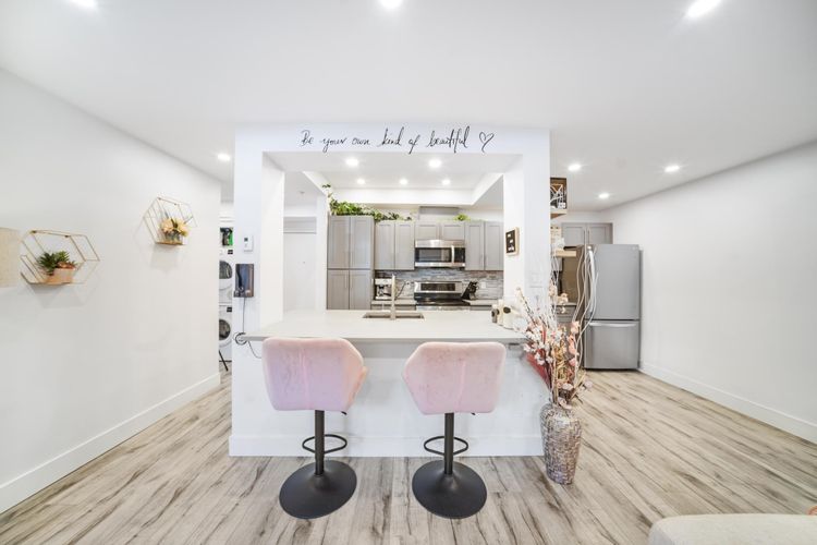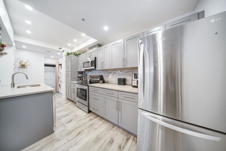 GROUND FLOOR, FULLY UPDATED 1 BED + 1 BATH condo in Glenwood, Port Coquitlam! Spanning 701 sq. ft., this home features an Open Layout with Wide Plank Flooring, new bedroom carpet & a sleek kitchen with Quartz Countertops & Premium Bosch & LG appliances. NEW Updated windows & a 20 ft. covered balcony provide ample natural light + outdoor space. The oversized bedroom fits a King-Size bed & more! Chic bathroom boasts a Deep Soaker Tub & Waterfall taps. Includes parking, a large storage locker & smart home features. Enjoy easy access to shopping, parks, schools, and public transit! Property is ideal for families or for investment - book your private showing **OH: SAT/SUN 1-3PM**