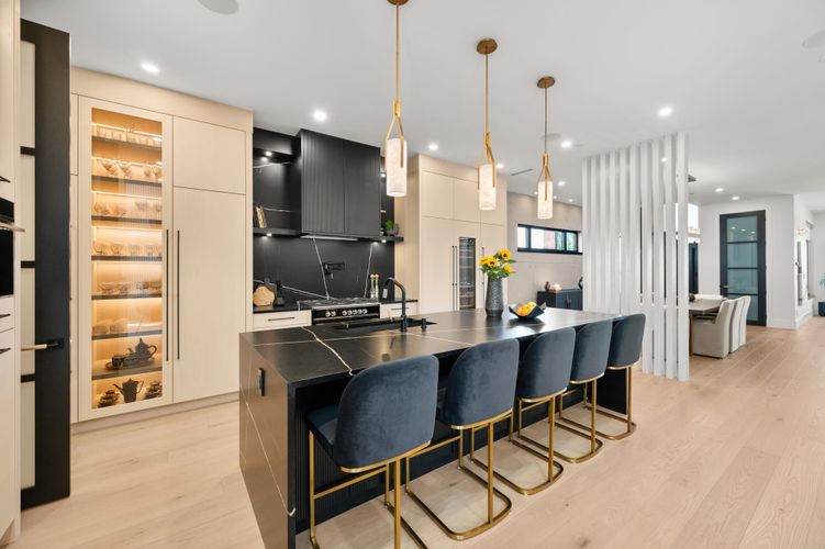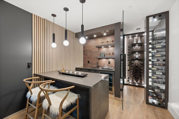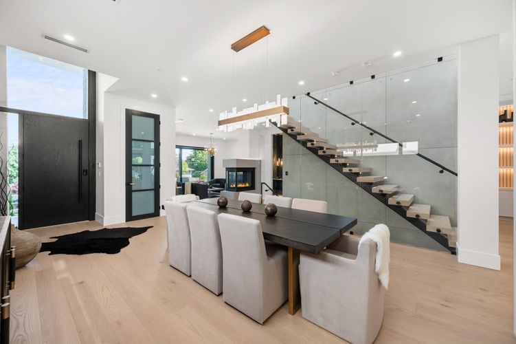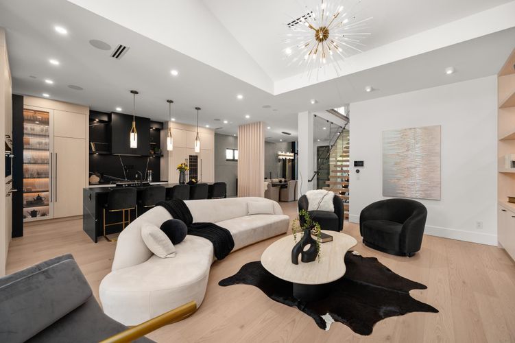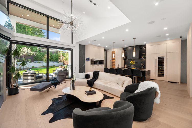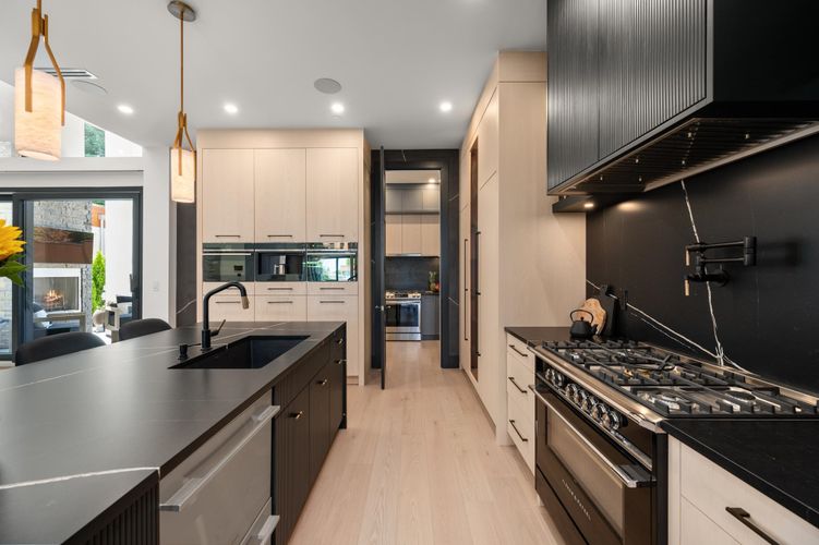 Stunning design &n quality construction by Rychter Custom Homes. Honey-coloured hardwood floors, floating staircase & extensive wood features are just the start. Radiant heat, A/C, automated blinds, Control 4- smart home, on demand H/W, Retractable B/I Vac, Generac Generator, Shinnoki Panel Cabinetry with Integrated Liebherr Fridge, wine cooler & 24" Freezer. Fisher Paykel kitchen appliances, B/I Coffee/Espresso & Steam Oven, Spice kitchen. Covered outdoor living space with fireplace and b/i barbecue station. Primary suite has open glass wall to the sundeck with view of the mountains & ocean. Rooftop deck is perfect for entertaining. 1-bed legal suite is also registered with Airbnb. Bsmnt offers rec room with wet bar, wine storage & sauna.