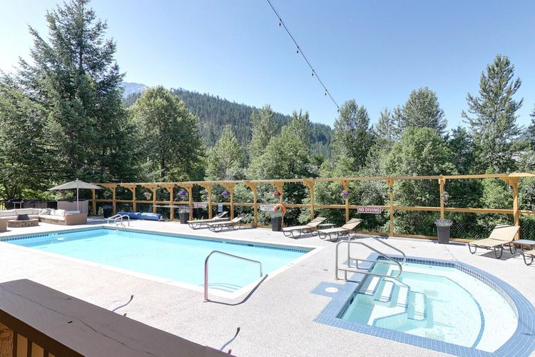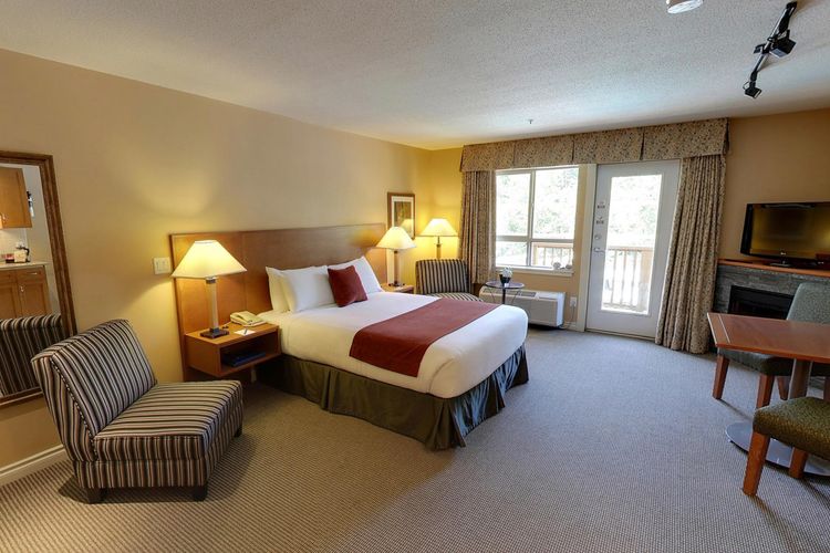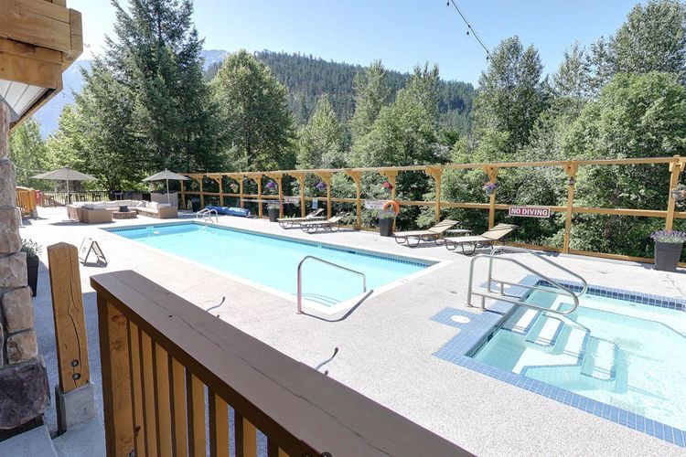 Award-Winning Lodge studio suite with direct pool access. Located just 25 minutes from Whistler, this exceptional studio suite is part of Pemberton´s top-rated hotel and one of only three in town. The only unit with direct access to the outdoor heated pool and hot tub via a private deck. This spacious studio features a cozy fireplace, queen bed, fridge, and all essential furnishings. Owners enjoy up to 120 days of personal use per year, plus a private in-suite storage locker. The suite is part of a strong revenue-generating rental pool when not in use. Hotel amenities include a fitness room, hot tub, dog wash, coffee bar, meeting room, complimentary laundry, and more plus it's pet-friendly! Ownership also includes a share of the front parking lot for added long-term value.... (id:26452)