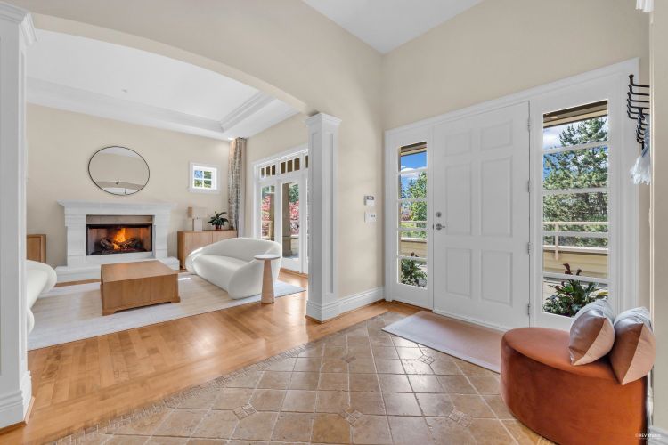 Located in the prestigious Caulfeild neighborhood, this beautifully maintained Bradner-built home sits on a private 12,023 sq. ft. lot, backing onto a lush greenbelt at the end of a quiet cul-de-sac. Thoughtfully designed for both family living and entertaining, the main floor features an elegant formal living room, a spacious kitchen with its own walk-in pantry, and a bright family room that opens to a front patio with a covered BBQ area, perfect for year round gatherings. Upstairs offers four generous bedrooms, including a luxurious primary suite with a serene private patio. The lower level boasts a large recreation room with a fireplace, a fifth bedroom with newly updated, carpet, and ample storage space. In-floor radiant heating system ensures both warmth and energy efficiency. All of this is within walking distance to Caulfeild Elementary School and the village amenities. (id:26452)