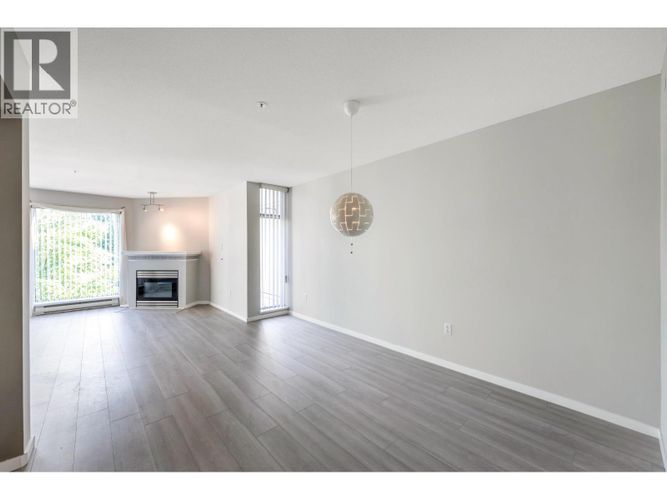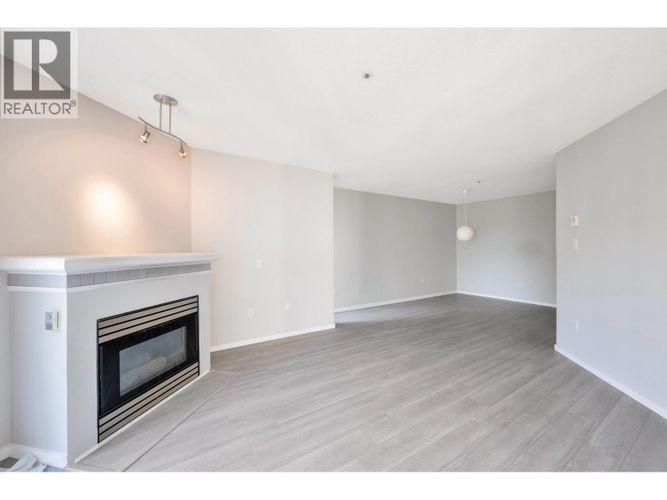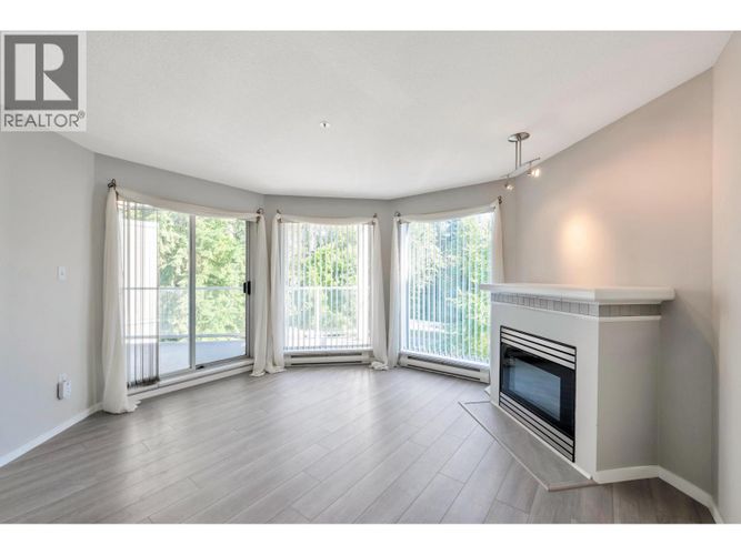 Welcome to Mountainside Place! This 3rd floor corner unit faces south and offers 2 bedrooms, 2 bathrooms, a den/solarium, gas fireplace, and 1103 square ft of well-maintained living space with new laminate flooring. Floor-to-ceiling windows brighten the open-concept living and dining area, which opens to a generous balcony. Both bedrooms have balcony access; the primary features a walk-in closet and 4-piece ensuite. 2 parking spots near the elevator, in suite laundry, storage locker, and ample visitor parking. Walk score of 90! Close to Coquitlam Centre, Lafarge Lake, SkyTrain, Douglas College, Hoy Creek and more. Pet-friendly, rain screened building with gym and amenity room. (id:26452)