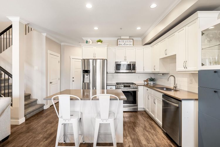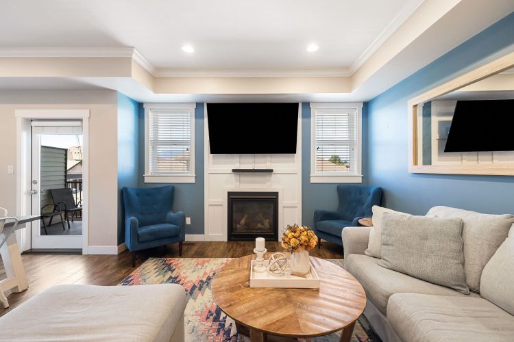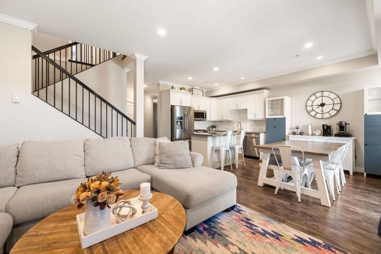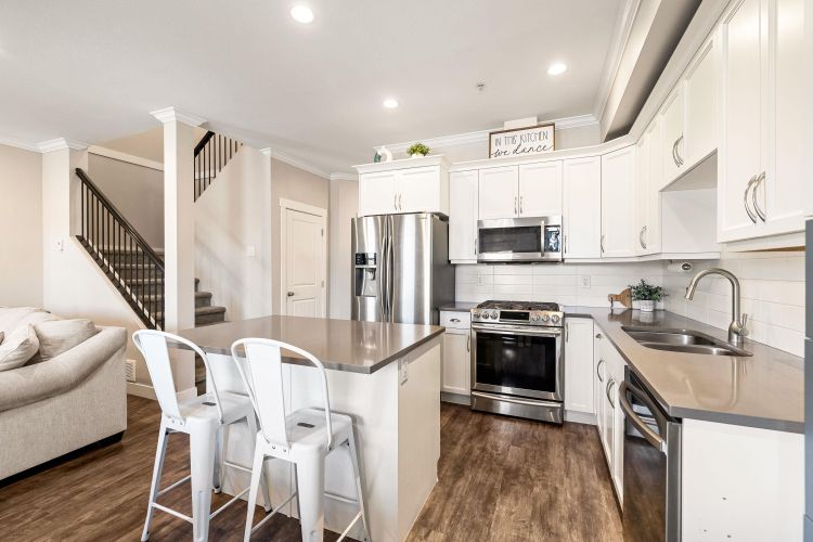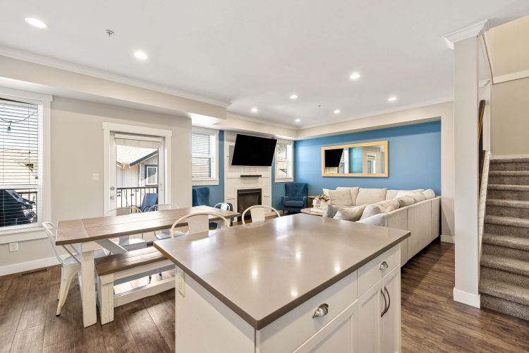 Stylish 2-Storey + Basement Townhome with double garage, fenced yard and plenty of storage. Step into a contemporary open-concept main floor with a stunning kitchen showcasing quartz countertops, gas range, and timeless white shaker cabinets. The bright dining area leads out to a private patio. This beautifully designed 3 bed 4 bath home, is 2,486 sq ft and offers modern comforts like central A/C, gas fireplace, and natural gas BBQ hook up. The finished basement offers a large rec room, media room, full bathroom, storage, bright windows and access to the fully fenced yard. This home is ideal for families or investors. Pet-friendly & Rentals allowed. FANTASTIC Sardis location (id:26452)