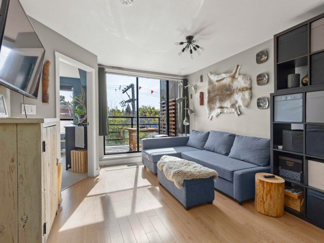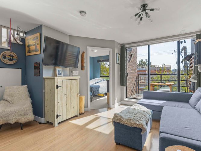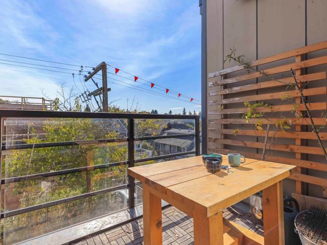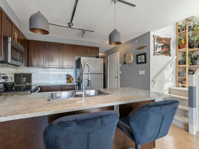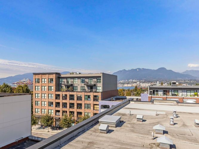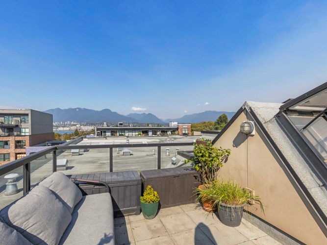 OPEN HOUSE Saturday, Dec 13th from 2 to 4pm! Penthouse #20 - South West corner with 202sqft. rooftop deck & 360° water, city & mountain views on the QUIET side of building. 1 bed, 1 bath, 2 balconies-bright, stylish East Van living - feels like home and not a condo! The showpiece is a 202 sqft PRIVATE rooftop deck with 360° views of water, city & mountains & sunsets plus a 2nd balcony for morning coffee gives you 250+ sq.ft. of outdoor living. Inside, bright open-plan living flows into a modern kitchen with stainless steel appliances & smart design. Bedroom is a peaceful retreat filled w/ natural light. Added perks: in-suite laundry, secure parking & bike room. In vibrant East Van w/ transit, breweries, cafés, shops & parks just steps away. Penthouse living - not a typical condo.