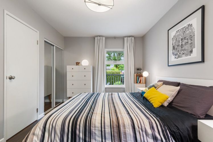 Nestled in a quiet, community-oriented pocket of Mount Pleasant, this thoughtfully designed 1031sqft townhome provides an open-concept layout and tremendous natural light that flows throughout. The renovated kitchen offers ample storage and flows seamlessly into the dining area and out to a private balcony while the charming living room features a fireplace, creating a warm and inviting space. Two well-sized bedrooms and two modern updated bathrooms, generous upgraded laundry room and dual front and back entrances, all complemented by stylish dark laminate flooring throughout. This is a well maintained, proactive strata complex with a true neighbourhood feel and effortless access to top restaurants, boutiques, and all the energy of the city and direct access to a nearby park and school.