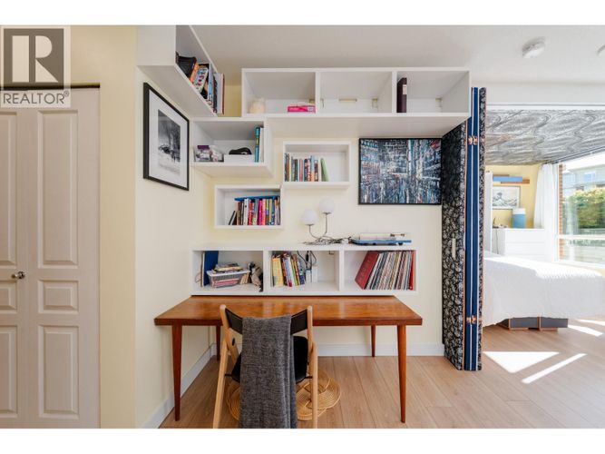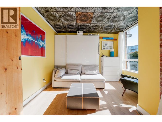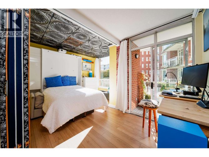 TRANQUIL Yet EVERYTHING AT YOUR DOOR! Step into chic city living with this bright, modern junior one-bedroom condo positioned on the quiet side of the building overlooking the peaceful courtyard. Designed for comfort and function, this home features a smart floor plan with 9-foot ceilings, oversized windows, and elegant Winter Oak laminate flooring. The sleek kitchen boasts granite countertops, stainless steel appliances, and eat in space. Enjoy the convenience of IN-SUITE LAUNDRY and PRIVATE BALCONY OVERLOOKING THE COURTYARD; your own QUIET outdoor retreat. A versatile flex room offers endless possibilities: use it as a home office, creative space, pantry, or extra storage. BONUS: 1 secured underground parking, storage locker, gym, large party room. Located in one of the city's most vibrant and walkable neighborhoods steps to transit, Trout Lake, library, groceries, and an exciting mix of cafes and boutiques. High style, low maintenance, ready to move in & enjoy! Showings by appointment. (id:26452)