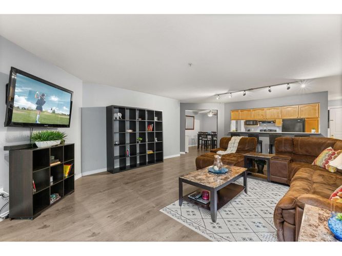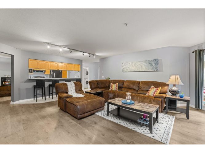 Aspen Creek BEAUTY, made for entertaining! The LARGEST 2BD 2BA condo in the bldg, offering complete Privacy & direct access, PLUS you only have neighbor on 1 side (opposite the bedrooms!). Fit for a king, this unit feat. open-concept living w/ galley-style kitchen & HUGE eating bar, a MASSIVE livingrm w/ gas FP that heats the whole place (gas incl. w/ maint.fee!), RARE semi-enclosed Dining area w/ room for hutch, & huge PRIVATE patio w/ over 260 sq. ft. of outdoor space to relax & enjoy the sounds from the Greenspace. Large master w/ Ensuite, good-sized laundry rm PLUS a storage locker & TWO parking spaces, & pets are allowed! Clubhouse next door has lounge, FP, pool table, kitchen & huge patio. Fitnesss rm & guest suite as well. PERFECT central location w/ everything at your fingertips!!! (id:26452)