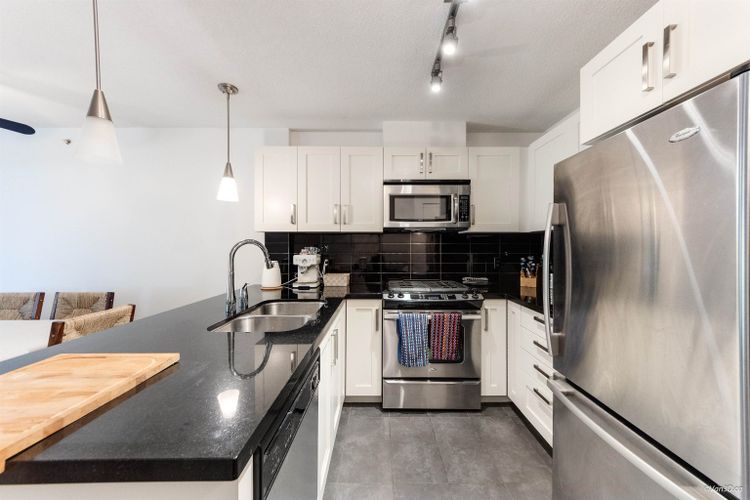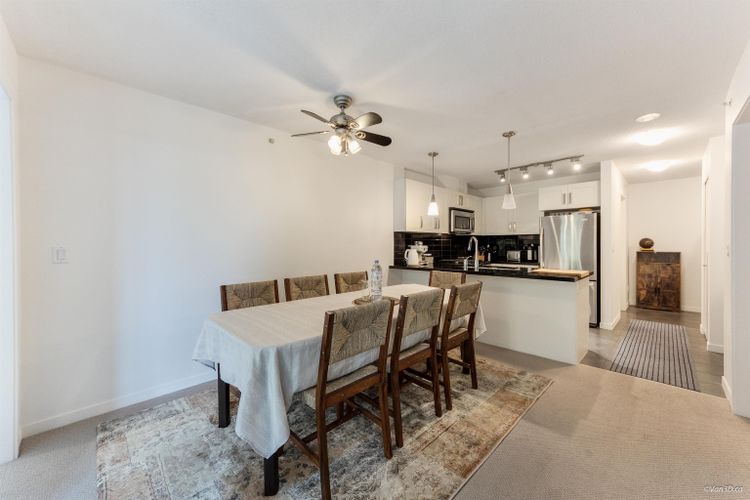 Well-kept 2 bed 2 bath at Perspectives! 2nd floor location lets you skip the elevator while enjoying privacy and greenery. New carpet & paint (Mar 2025). Granite counters, S/S appliances, gas stove & covered balcony. 1 parking & 1 locker included. Gas included in strata fee. Ample visitor parking, concierge on site 16/7, gym, party room, games area. EV charging station and car wash station. Dawson-Delta Park is across the street or enjoy the walking and biking trails in the area including one to Costco. Steps to Brentwood Mall, Brentwood SkyTrain and Holdom SkyTrain. Many eateries and shopping, including Whole Foods and soon to open T&T Market. *Added Value: Sellers to pay upcoming building envelope assessment*