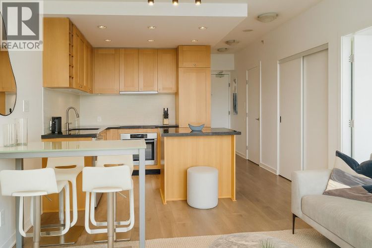 Experience stunning False Creek water views from this stylish 1 bedroom + flex home at Raffles on Robson. Enjoy panoramic vistas of Mt. Baker, the North Shore Mountains, and across to Burnaby. Features include Miele appliances, granite countertops, built-in wine rack, marble bathroom with separate shower, and intelligent air conditioning. Additional highlights: roller blinds, wide window ledges, and access to concierge, gym, hot tub, outdoor courtyard. Amenities include day concierge, gym, hot tub, outdoor courtyard and 15 visitor stalls. Open House sat/Sun 2-4pm. (id:26452)