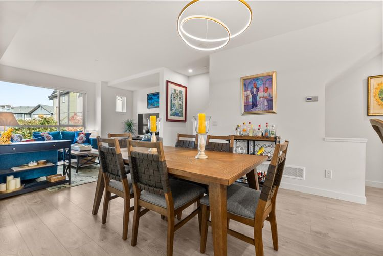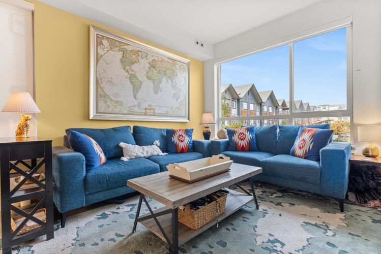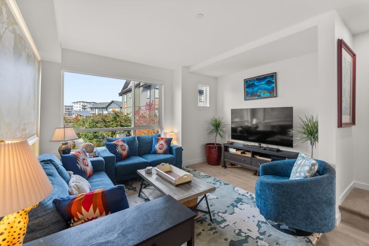 Stunning end unit in the desirable Boardwalk community. This 3 bed, 2.5 bath townhouse showcases a spacious backyard, perfect for relaxing or playing with the kids. Enjoy the serene park views and glimpses of the ocean from your home. Tandem garage has direct backyard access for convenience. Modern and elegant finishes include stainless appliances, quartz counters, and laminate flooring upgraded throughout. Privacy is ensured with no other townhouse directly in front and only a lovely park in the back. Single car driveway for convenient off-street parking. HW on demand. Fantastic amenities include an outdoor pool, hot tub, gym, kid zone, yoga studio, and work space. Don´t miss out on this beautiful home in a prime location. (id:26452)